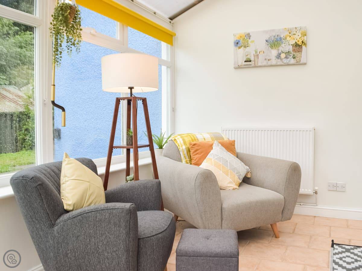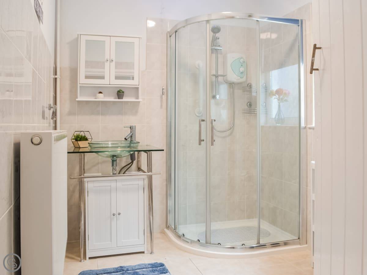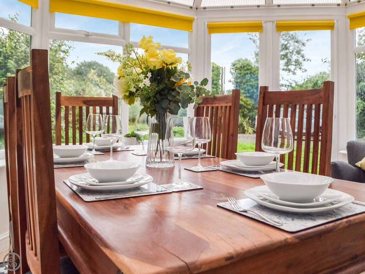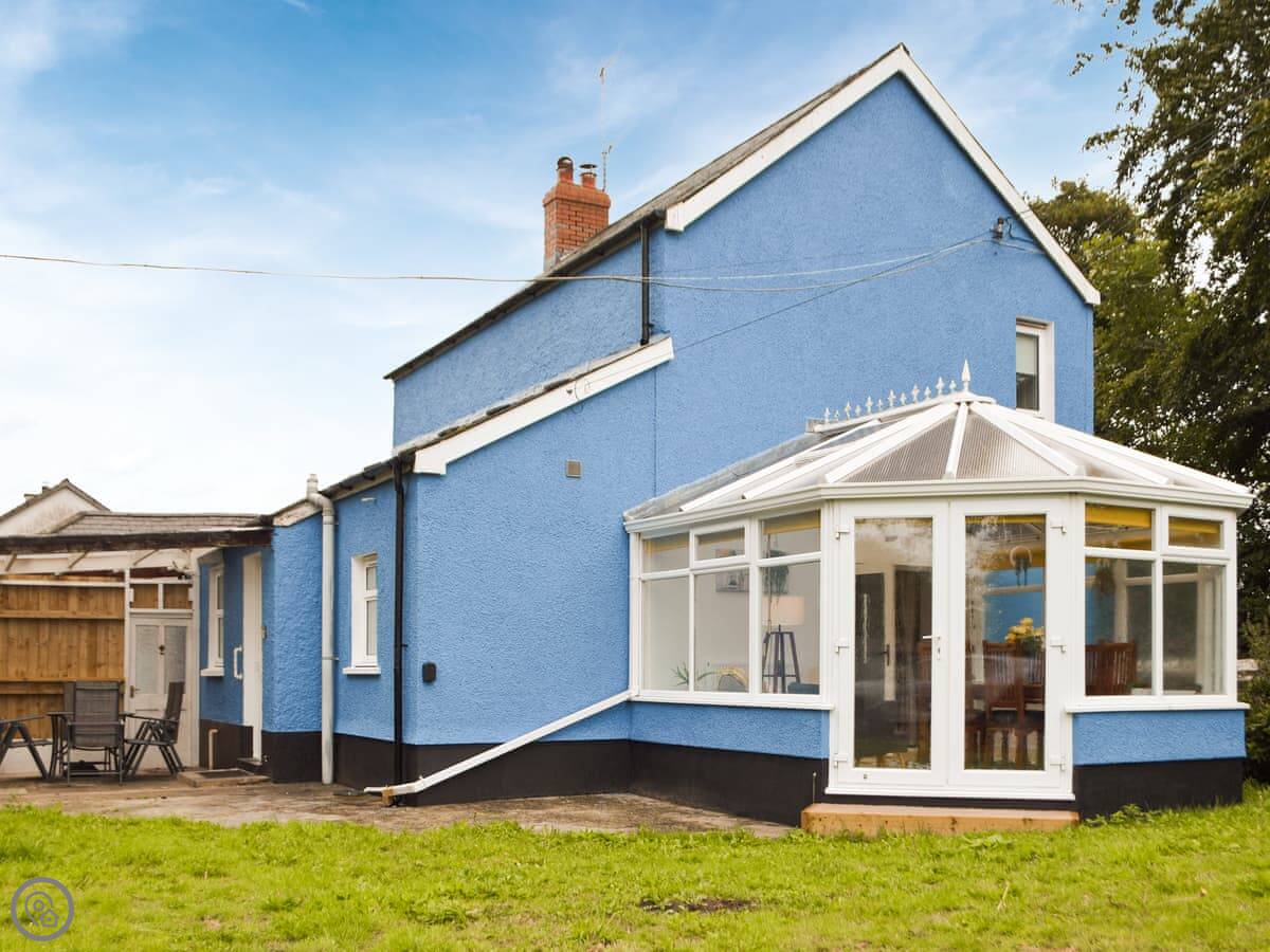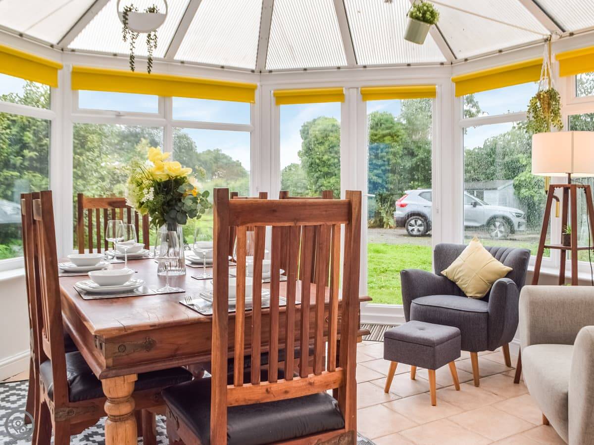 It's got a 4 Star rating. That means it's well equipped. There's a wood burner, a dishwasher, and a washing machine. Bedding and towels are included. The garden is enclosed, which is handy if you have dogs. It says pets welcome, up to two.