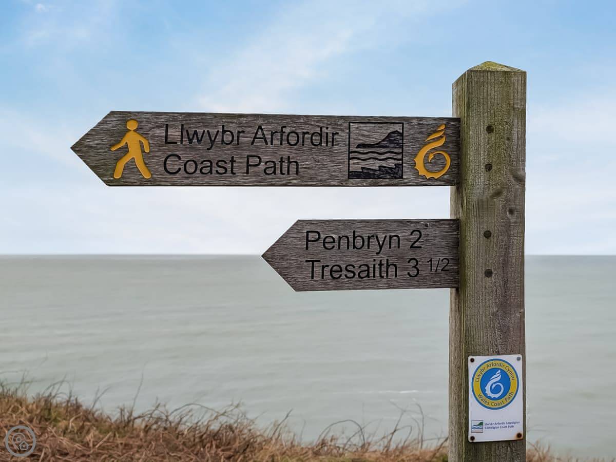 New Quay is the main draw. It's about a ten minute drive. The harbour is nice, and you can sometimes see dolphins. The beach is good. Aberaeron is about twenty minutes north. It's a pretty harbour town with coloured houses. For a longer walk, the Ceredigion Coast Path is right there.