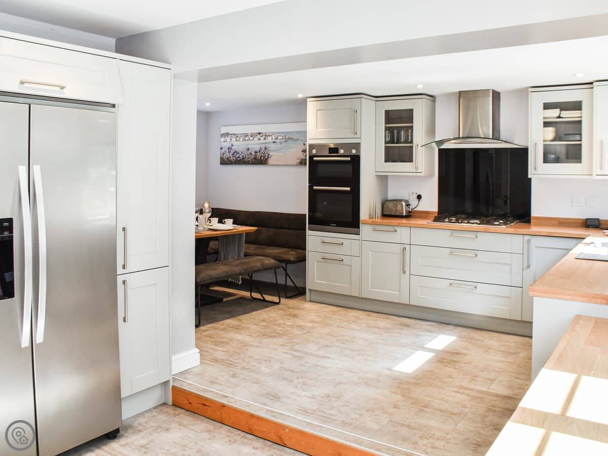 The back garden is enclosed. There's a conservatory looking out onto it, it's a nice spot to sit. The kitchen has a dishwasher and a washing machine. Bedding and towels are included. Parking is on the drive.