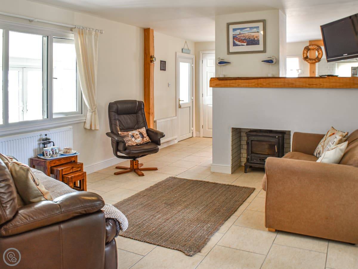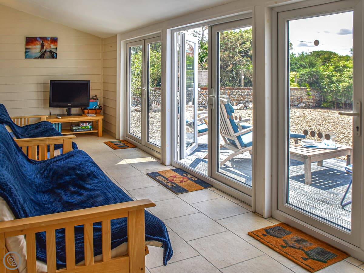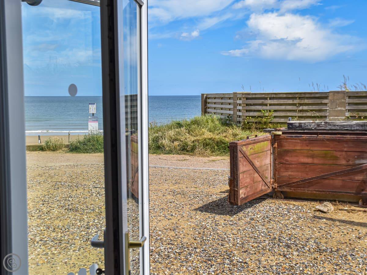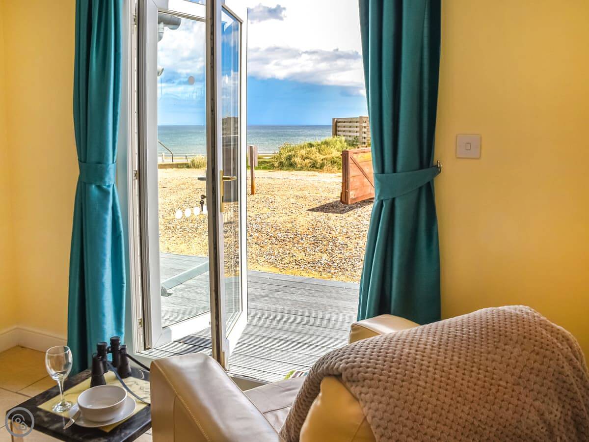 The Seas Beach House is in Bacton on the Norfolk coast. It's a bungalow, so all on one level, and it's detached. You can literally step out of the back gate and straight onto the sandy beach. The view is just the sea. I think that's the main thing about it.