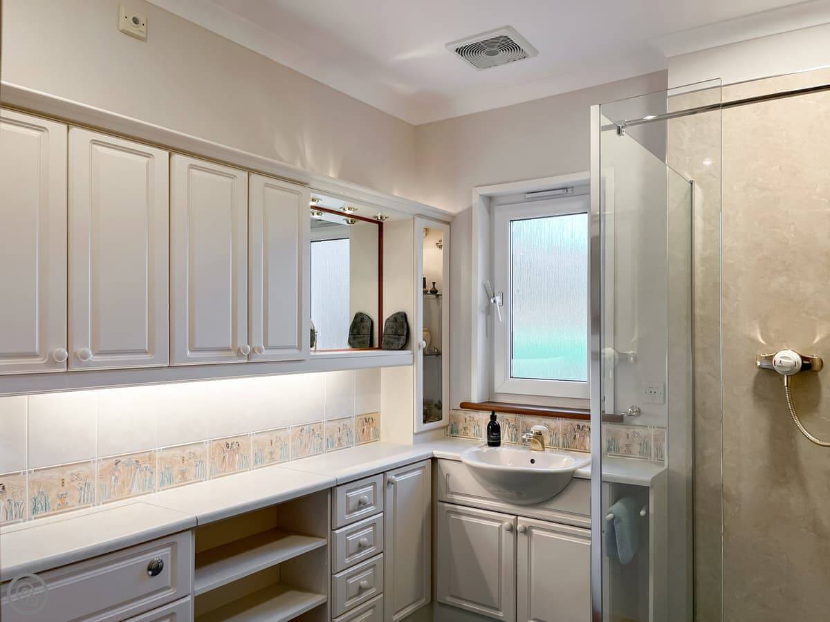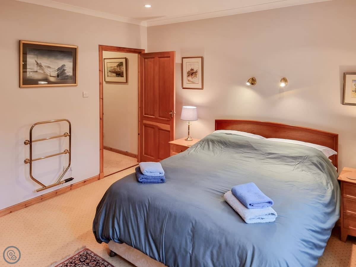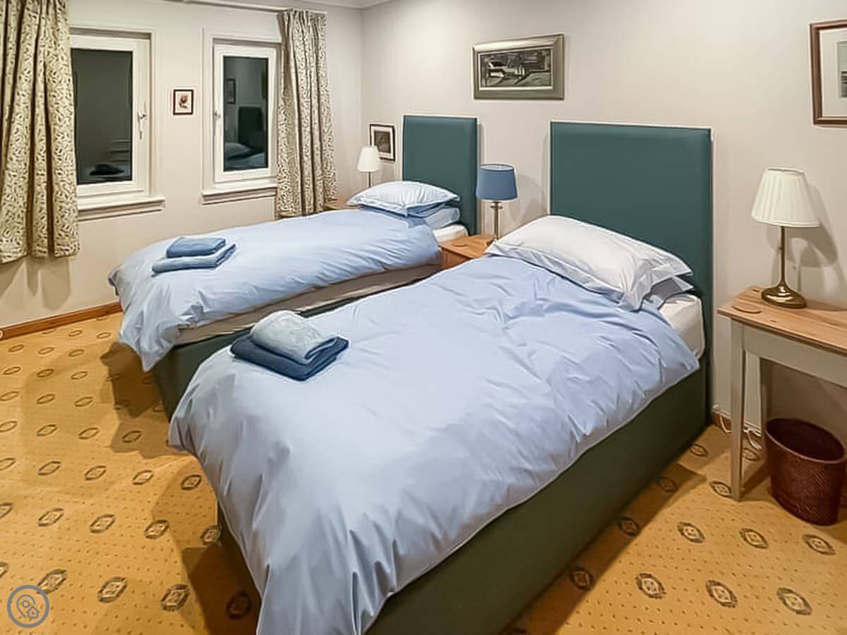 It sleeps eight people. Four bedrooms, two bathrooms. Everything's on the ground floor. Three of the bedrooms are doubles. The fourth has bunk beds, but they're full size ones, so they're fine for adults too. It's got a 4 Star rating. It's comfortable and well looked after.