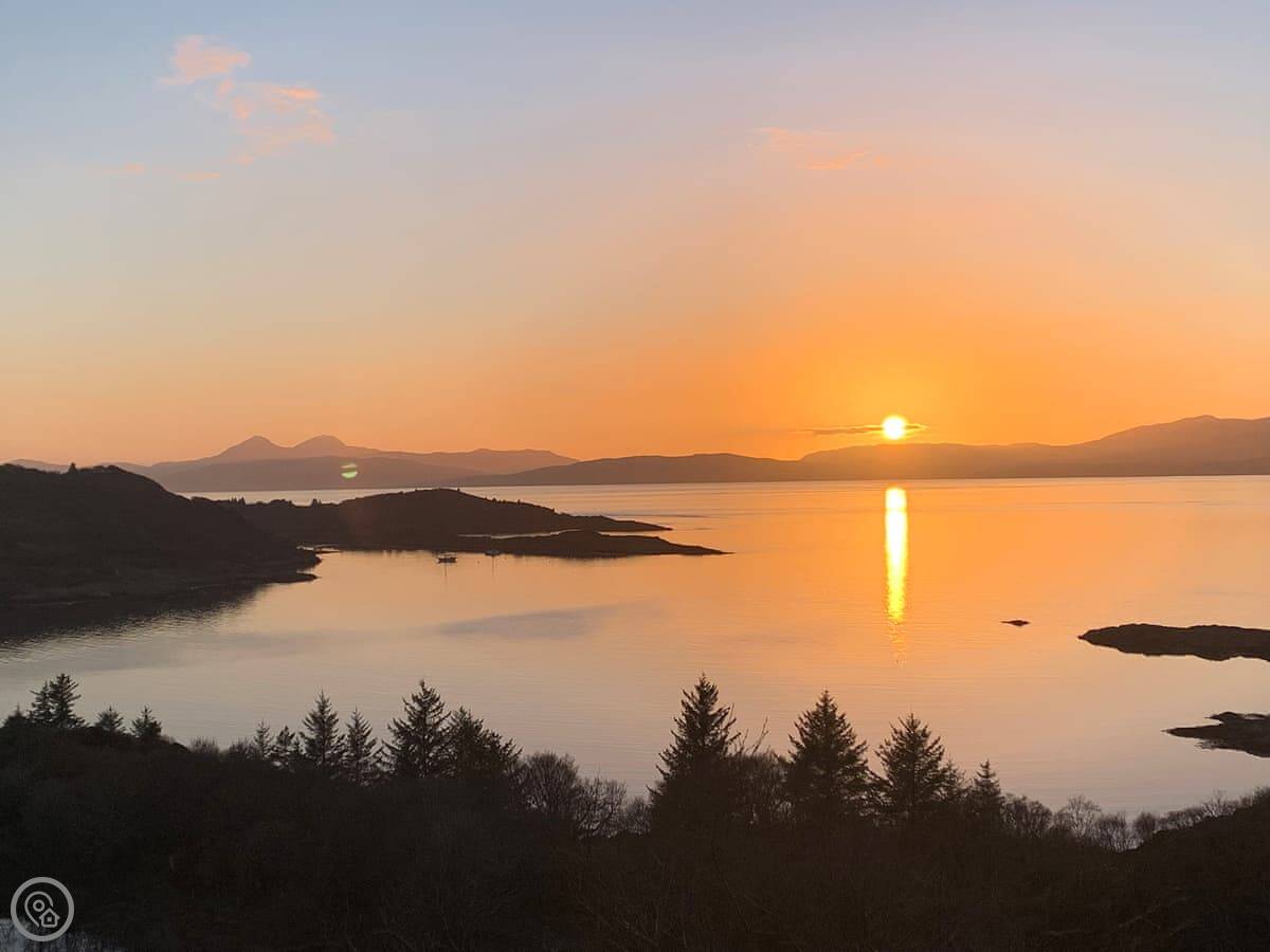 Across the track from the cottage, there's a path down to a little private area by the water. It's a good spot for a barbecue or to watch the sun set over Jura.