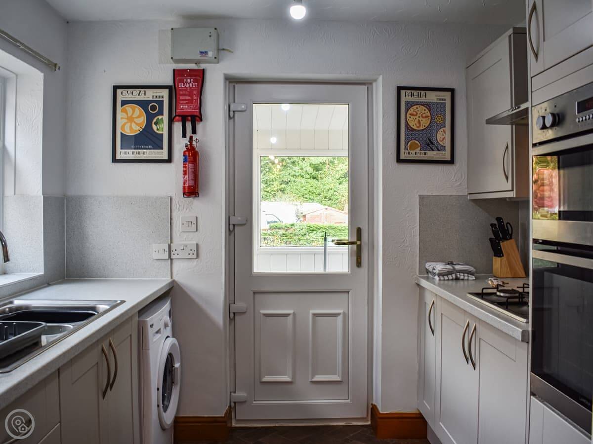 Inside, it's got what you need: a washing machine, TV, WiFi, and all the bedding and towels are included.
