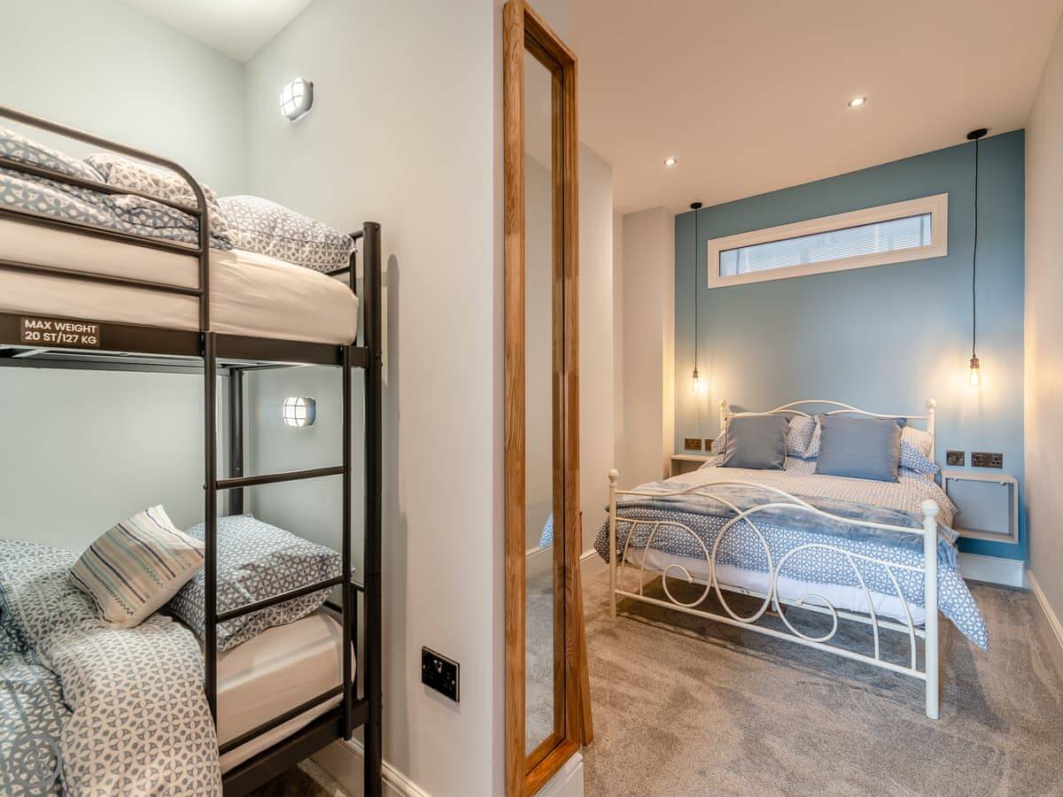 The layout is over four floors. There's a bedroom and a bunk room on the ground floor, with a shower room. That's useful if someone doesn't want to tackle the stairs. The stairs are normal for a house this age. They're a bit steep and winding.