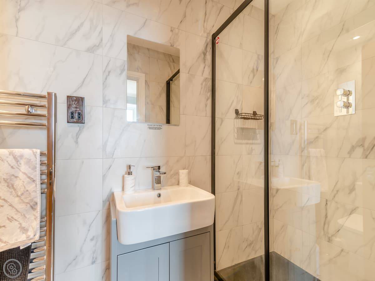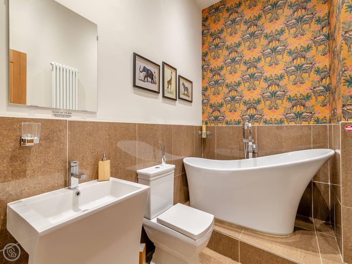 On the second floor, there are two more bedrooms. One has an en-suite shower and good sea views. The other is a twin. There's also a family bathroom up there with a slipper bath.