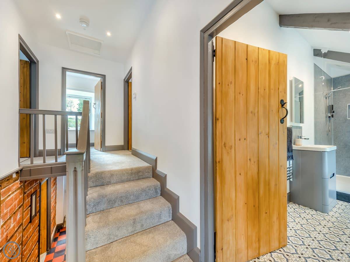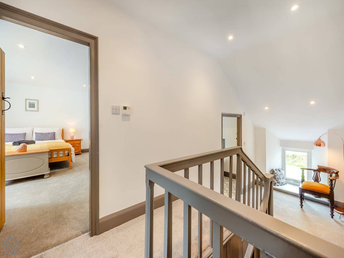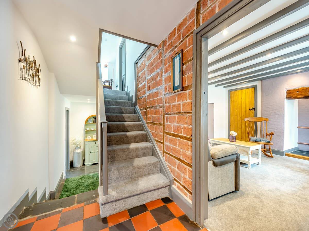 There are two separate living rooms, both with wood burners. One is off the kitchen, the other is quieter if you want to get away. The stairs are a normal staircase, not a steep cottage one.