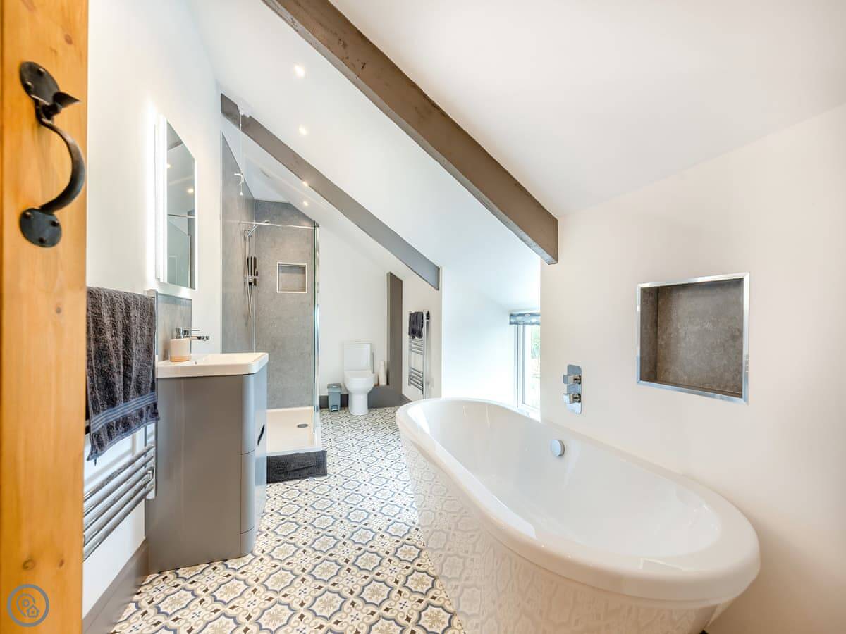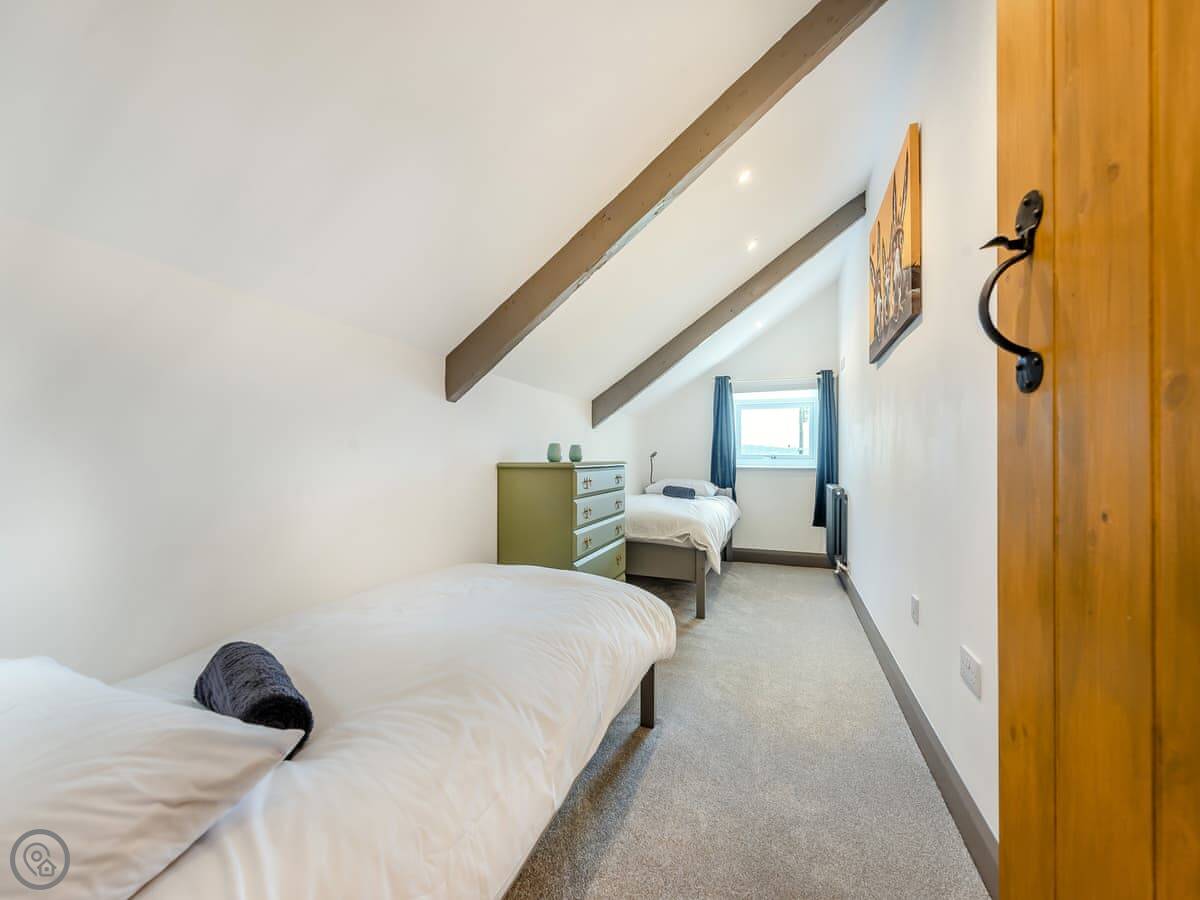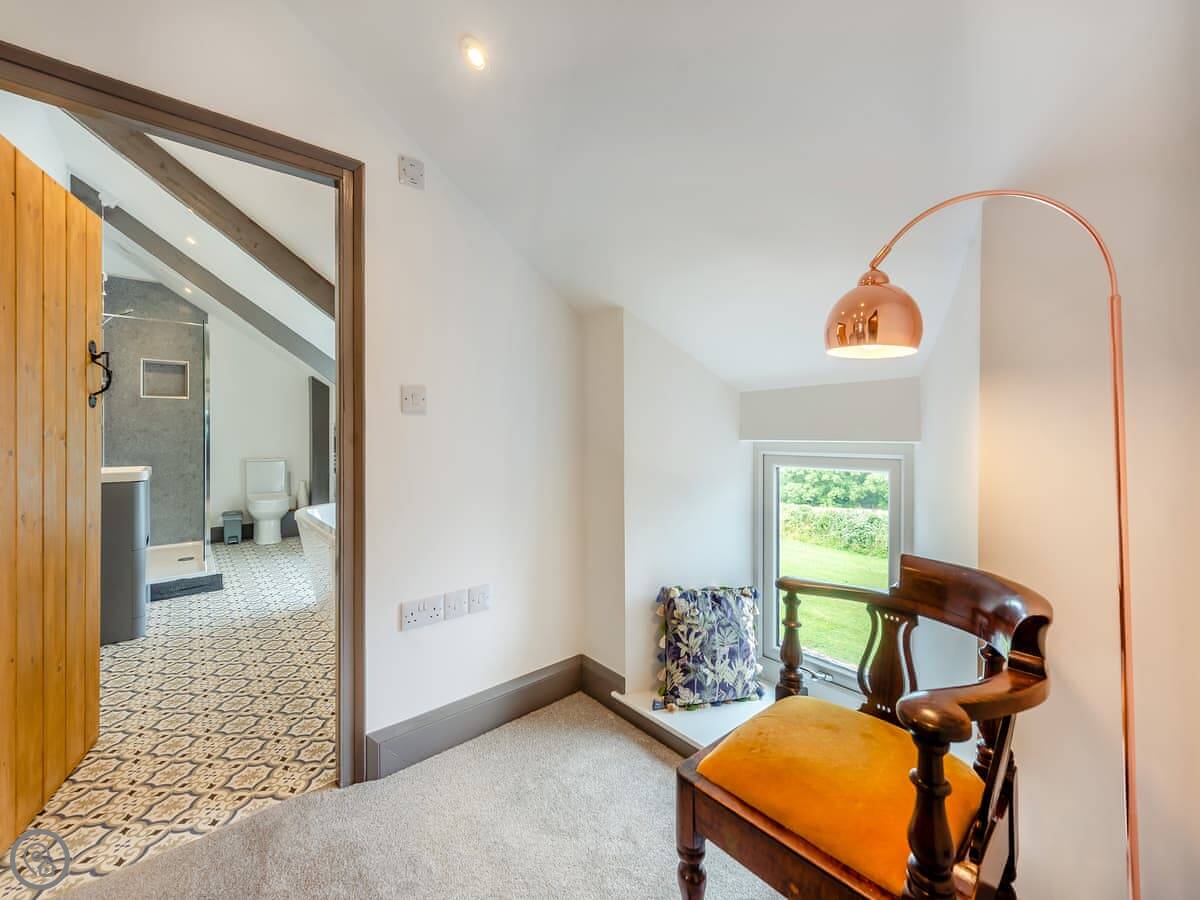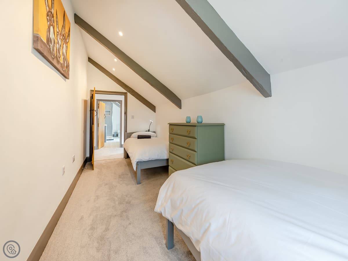 There are two separate living rooms, both with wood burners. One is off the kitchen, the other is quieter if you want to get away. The stairs are a normal staircase, not a steep cottage one.