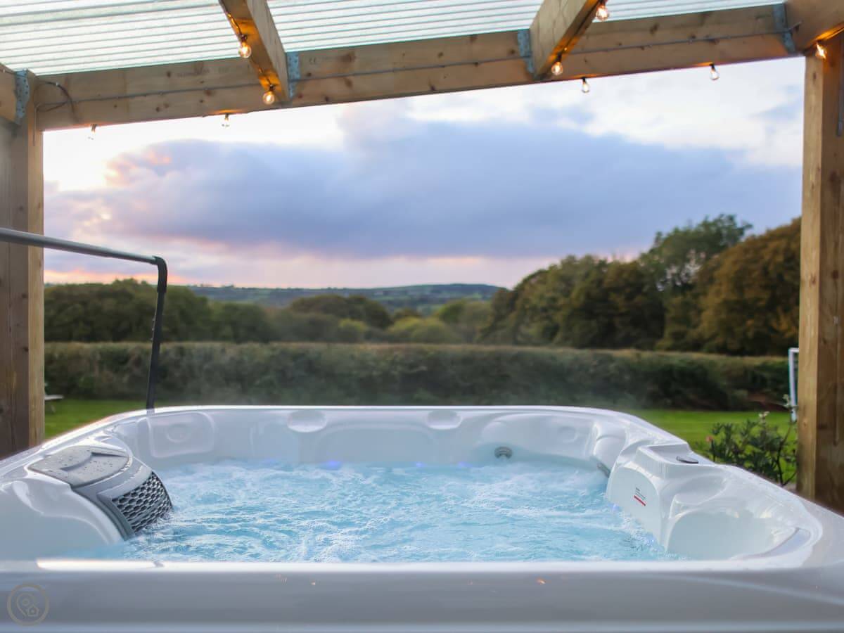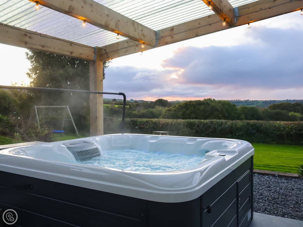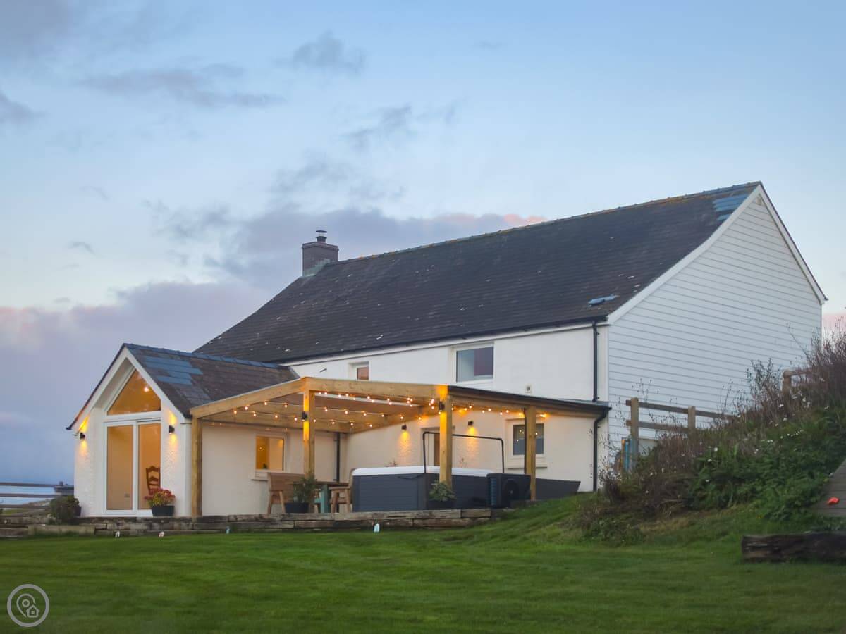 The garden is enclosed. There's a hot tub and a barbecue. There's a kids' play area with a slide and swing. You can bring two dogs.