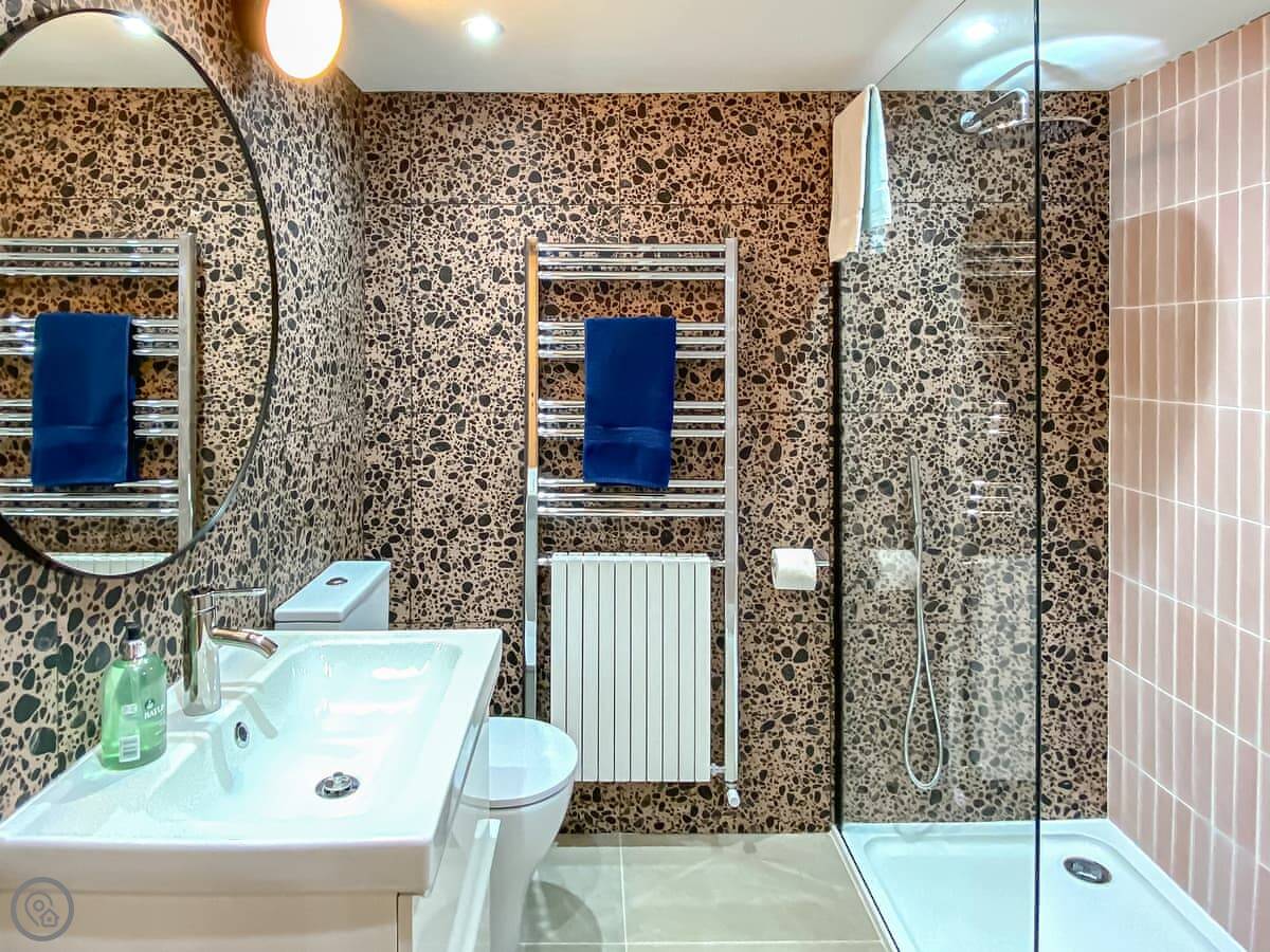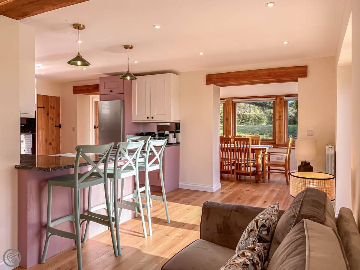 Facilities: it has a washing machine, dishwasher, TV, WiFi. Bedding and towels are included. There's an enclosed garden with a patio and a BBQ. On-site parking, and an electric vehicle charger. A cot and highchair are there if you need them. You can bring up to two dogs.