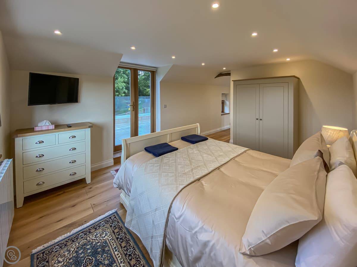 It sleeps eight, in four bedrooms. Three bathrooms. It's got a 5 Star rating, which means it's well-specced. There are two bedrooms downstairs on the ground floor. That can be useful.