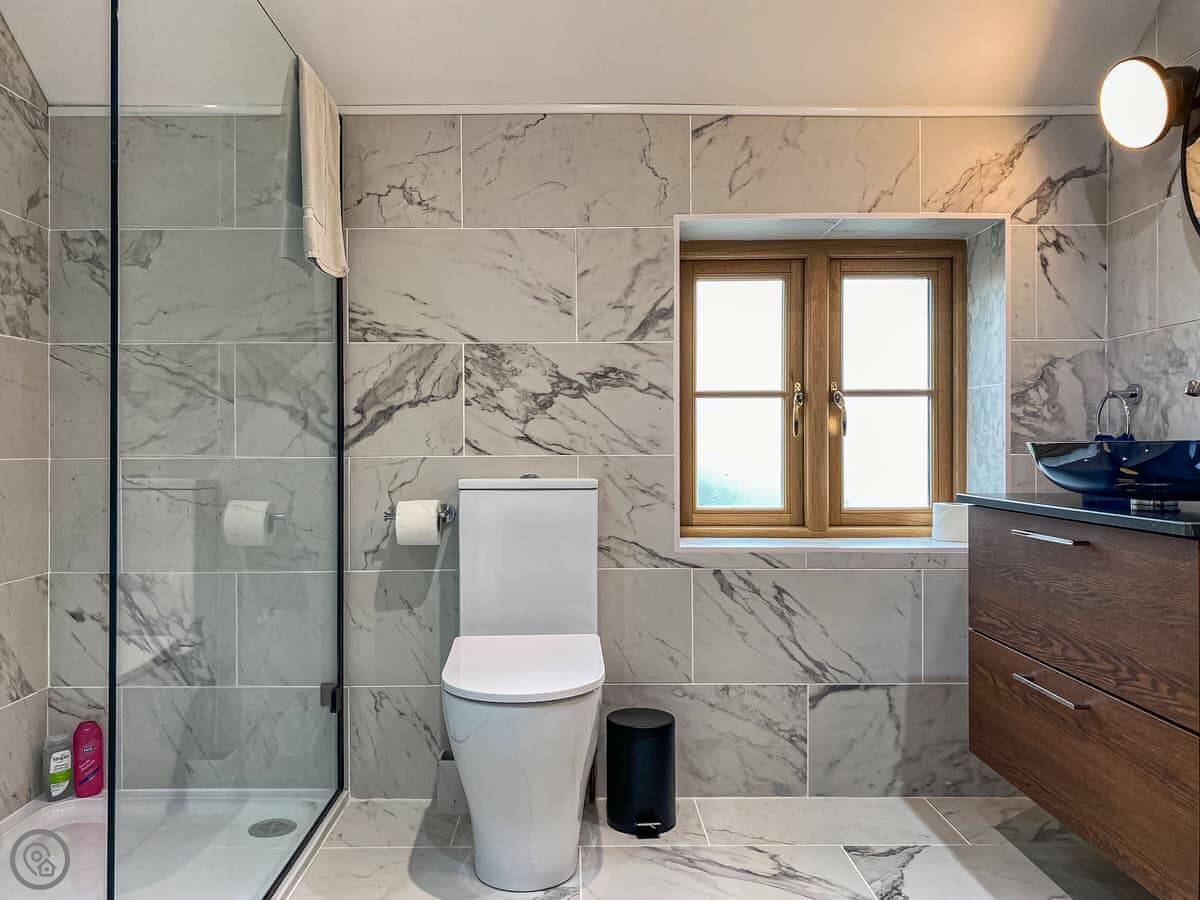 The cottage is part of a group of five, all done up using oak from the estate. They've tried to keep plastic use down. You have access to a shared gym and a tennis court on the estate.
