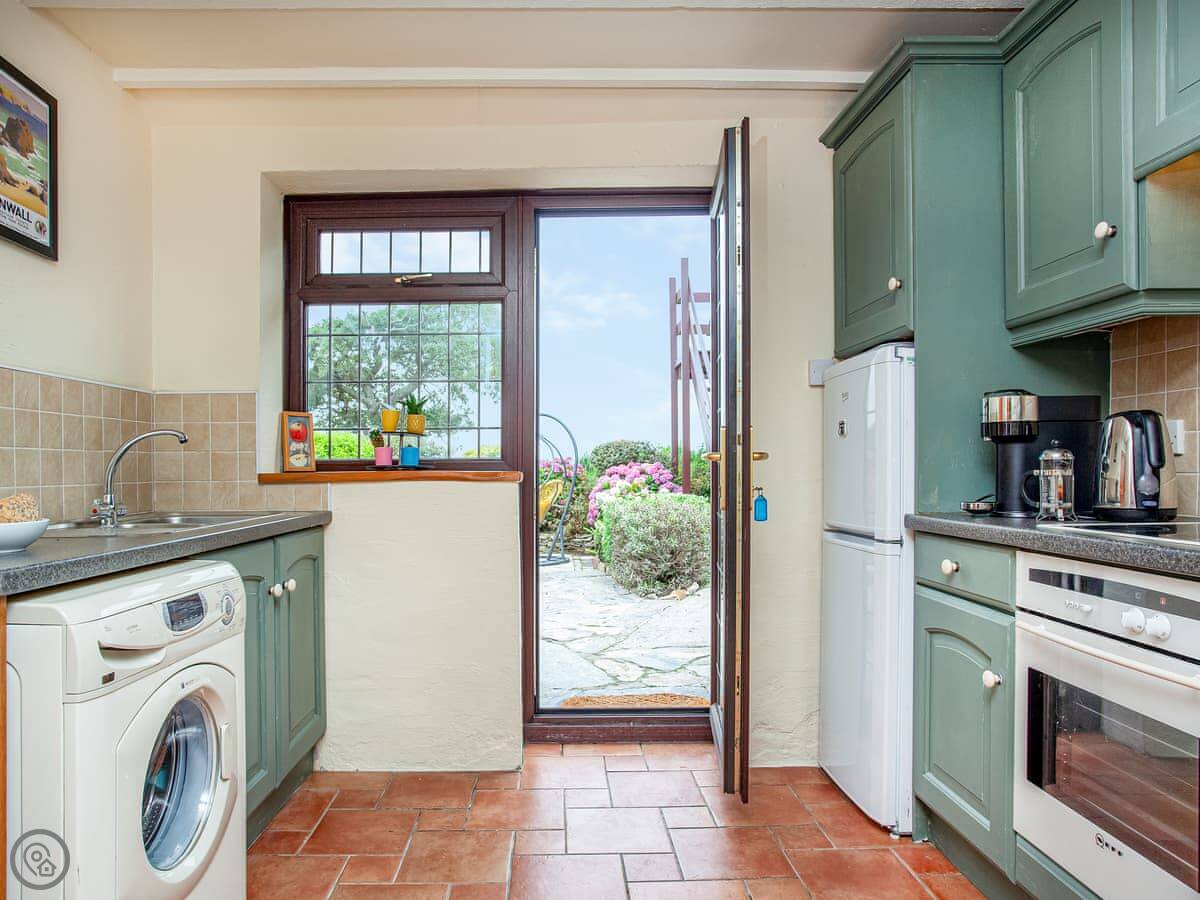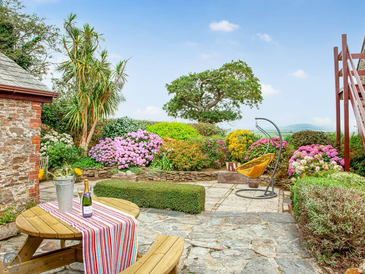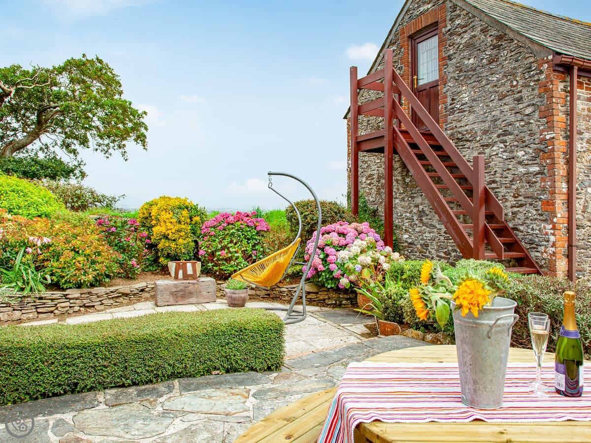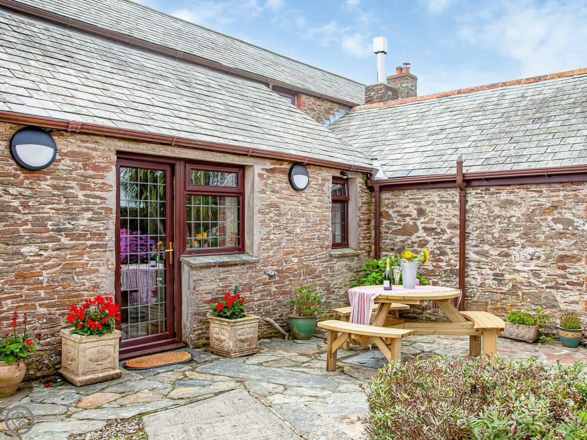The Nook is at Higher Kestle Barn, just outside Mevagissey in Cornwall. It's a ground-floor annexe attached to the main barn. You have your own patio space out the front.