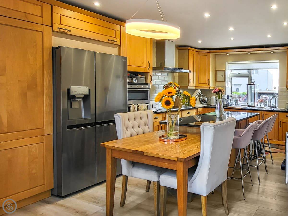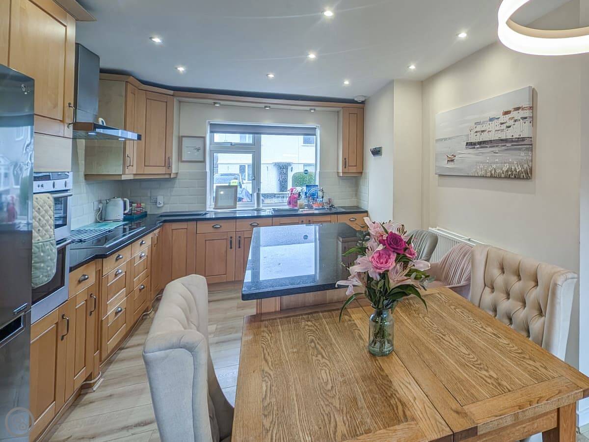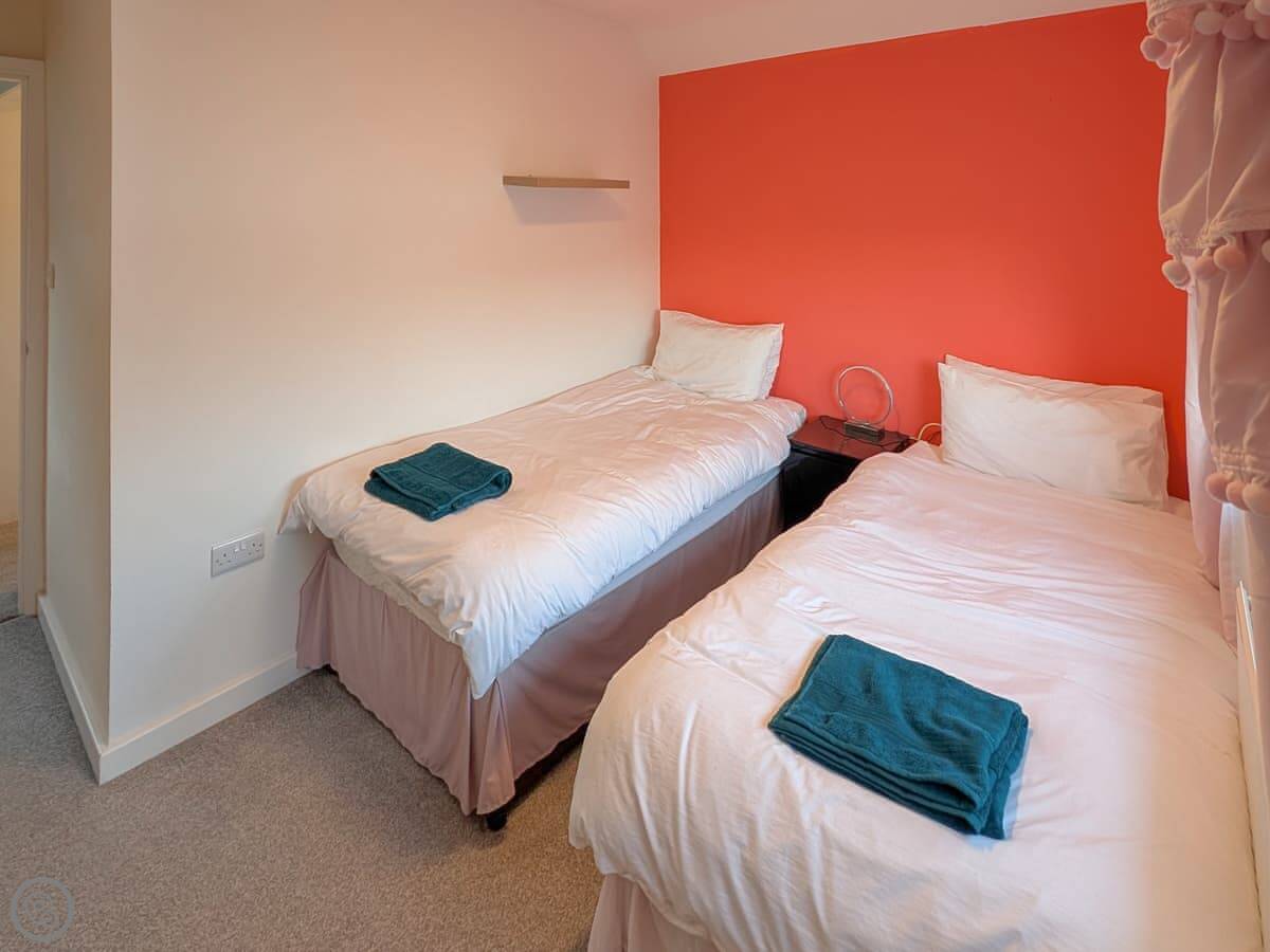 It's a standard three bedroom terrace house. Sleeps five. One bathroom upstairs, with a walk-in shower. There's a toilet in the outbuilding in the garden too, which is handy if you've got kids playing outside. The garden is enclosed and gets the sun.