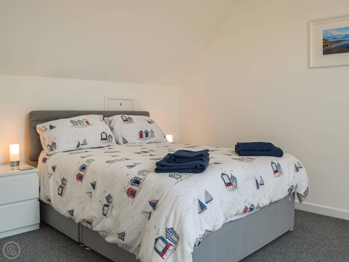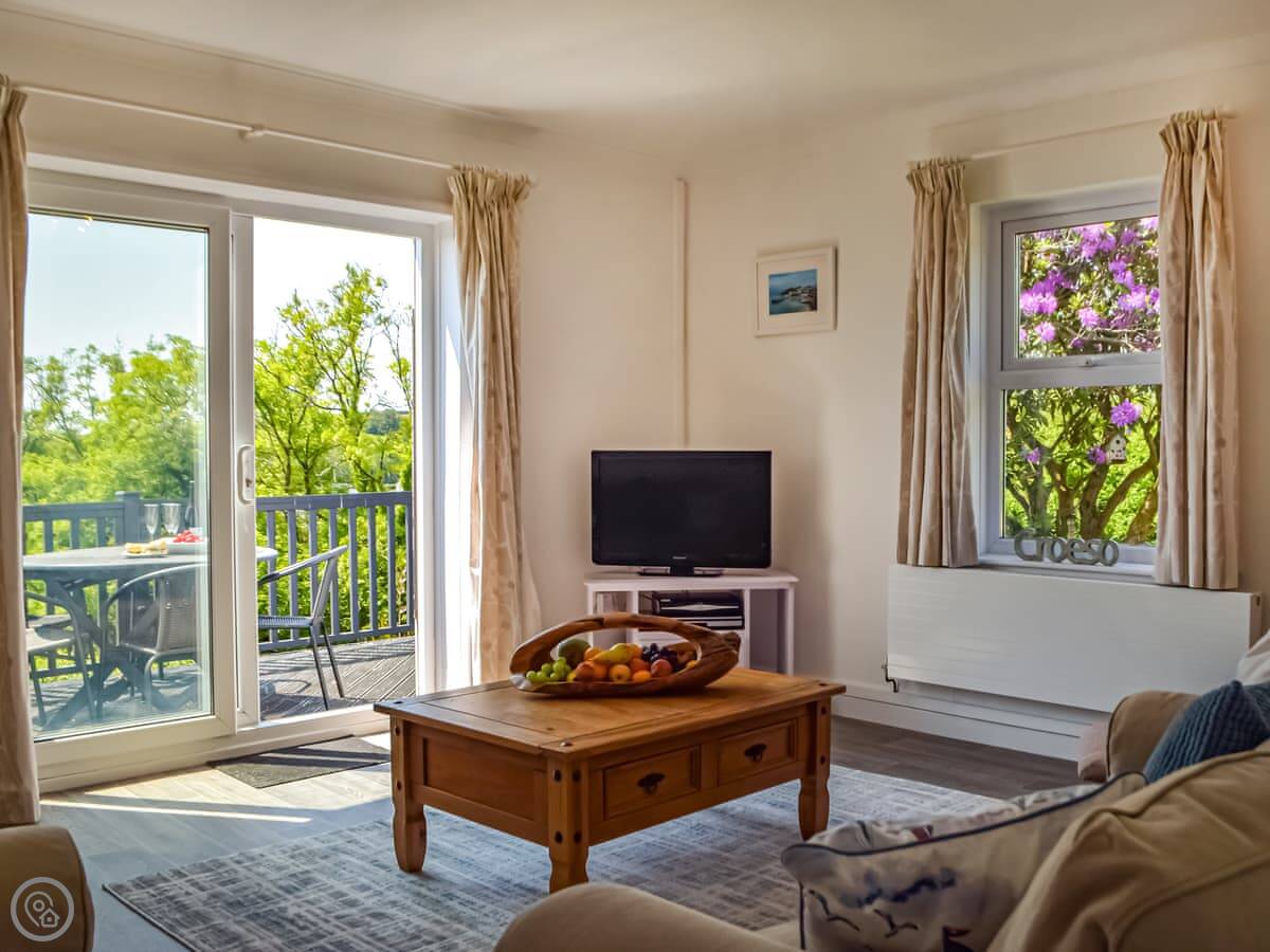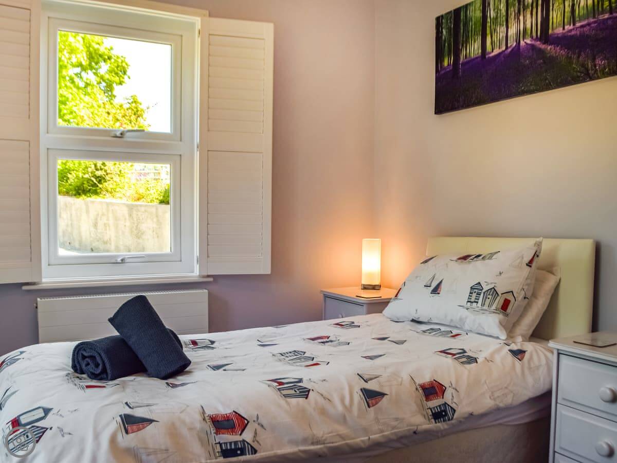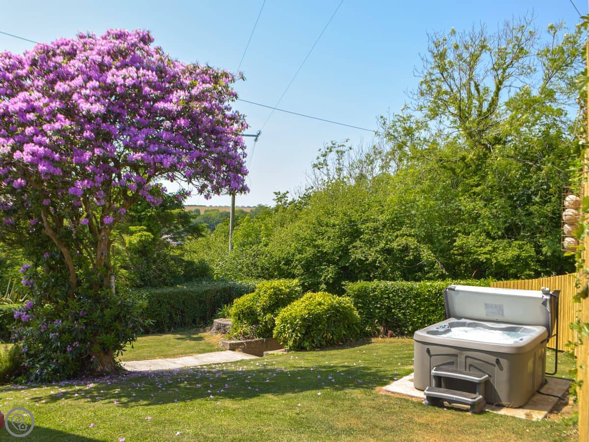It sleeps five. Three bedrooms, one bathroom. It's a 4 Star place, so it's well-equipped and comfortable. The hot tub is in the garden.