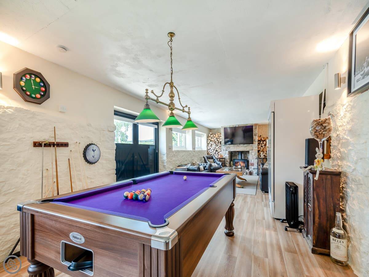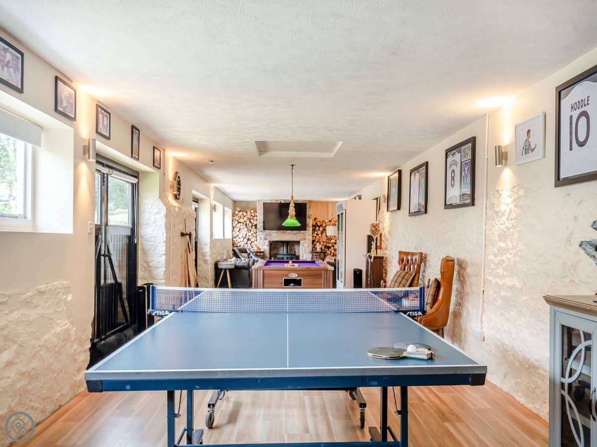 The farm isn't working, so it's quiet. You get the place to yourselves. The garden has seating and a firepit. There's a new hot tub. The French doors from the living room lead into a games room with a pool table, table tennis, darts, and a TV.