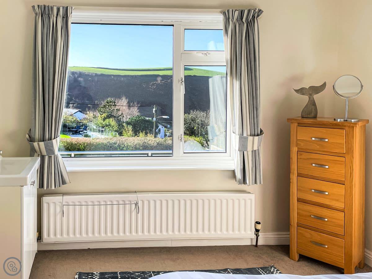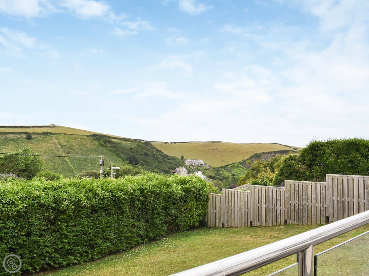 The best bit is probably the terrace. It's enclosed, with a glass balustrade so the view isn't blocked. You can see Roscarrock Hill and Doc Martin's cottage from it. There's a small enclosed lawn too.