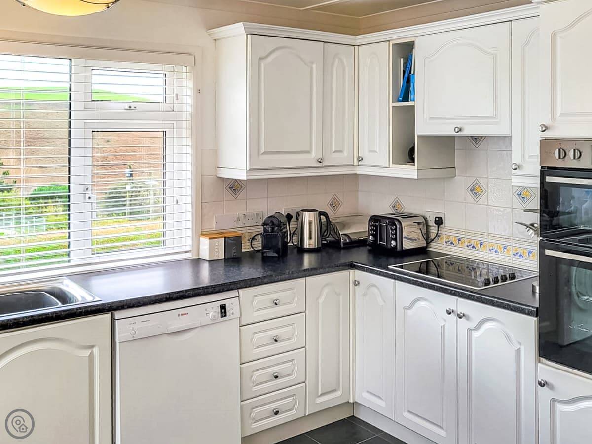 Inside, it's warm and comfortable. There's an open fire for winter. The kitchen is well-equipped, with a Nespresso machine and a slow cooker. You get a washing machine, dishwasher, wifi, and TV.