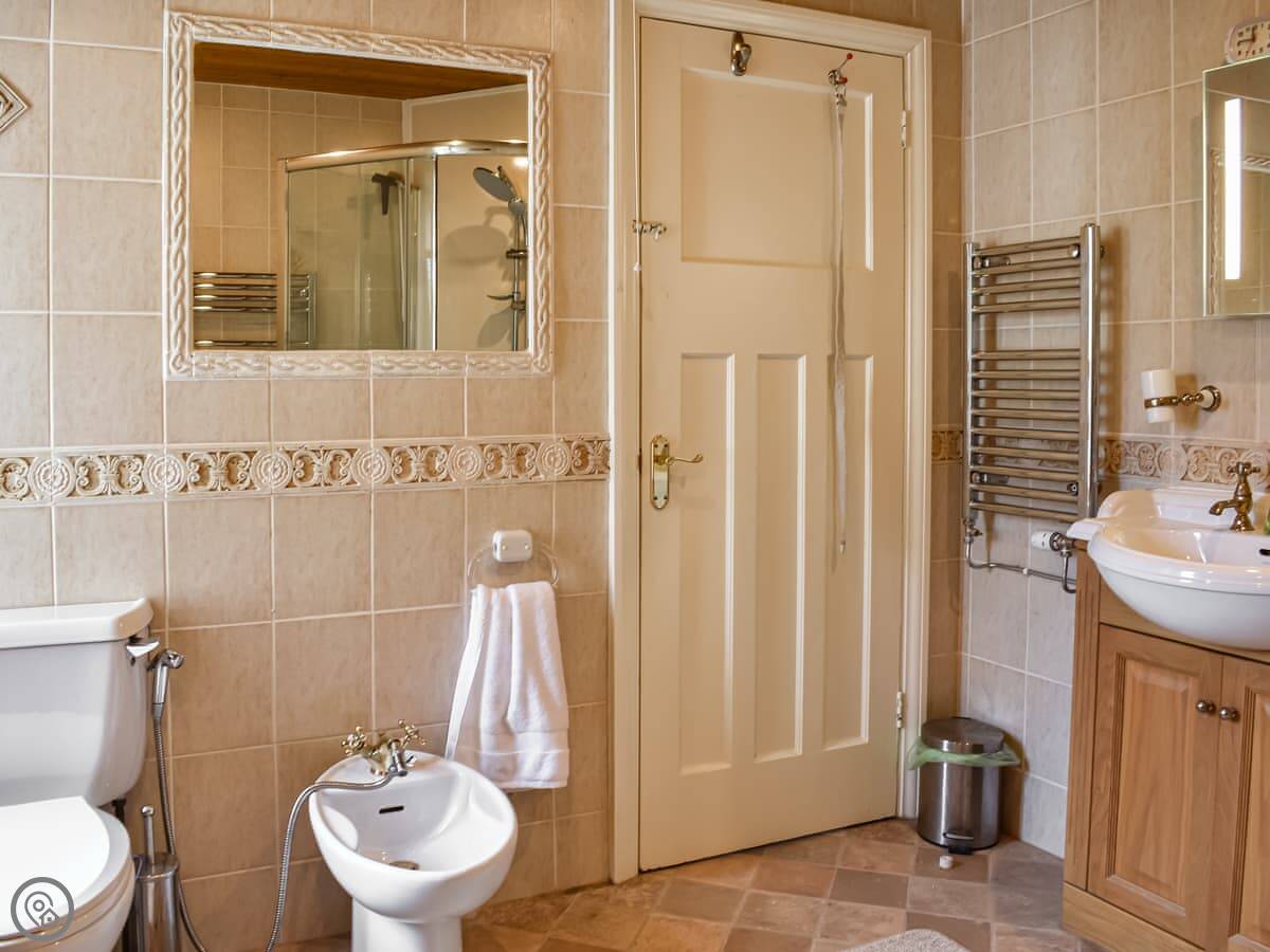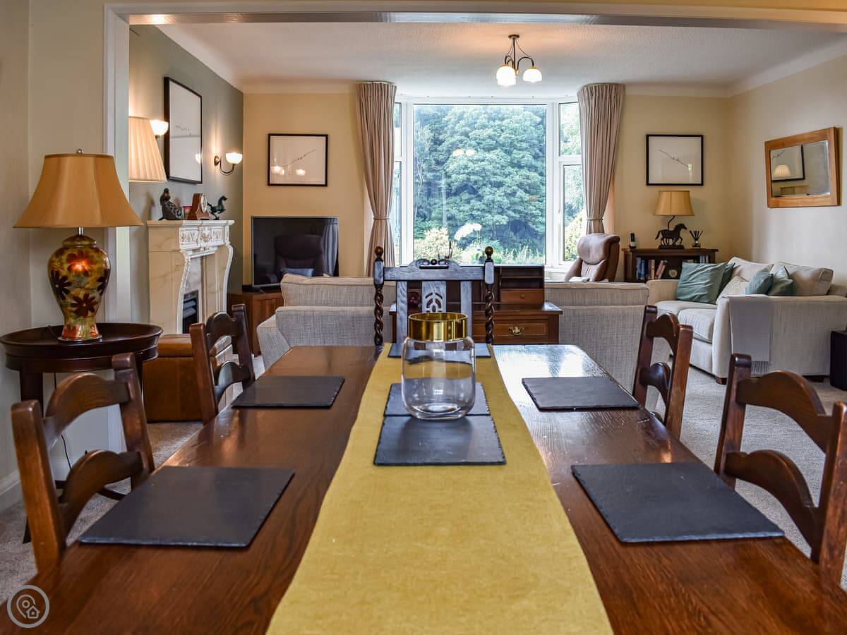 Outside, there's a private patio with a garden beyond it. The view is mainly over fields and trees towards the fells. You get the whole space to yourselves. There's parking for two cars on the drive.