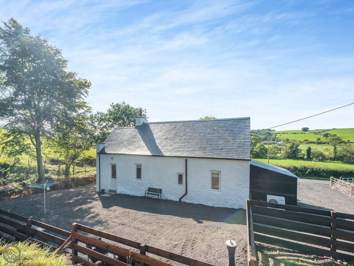 Lincumtoy is a cottage here in Pinwherry, just off the main road. It's the end house in a little terrace. It sleeps two, one bedroom upstairs. There's a bathroom with a shower. The rating's 4 Star, so it's comfortable and in good order.