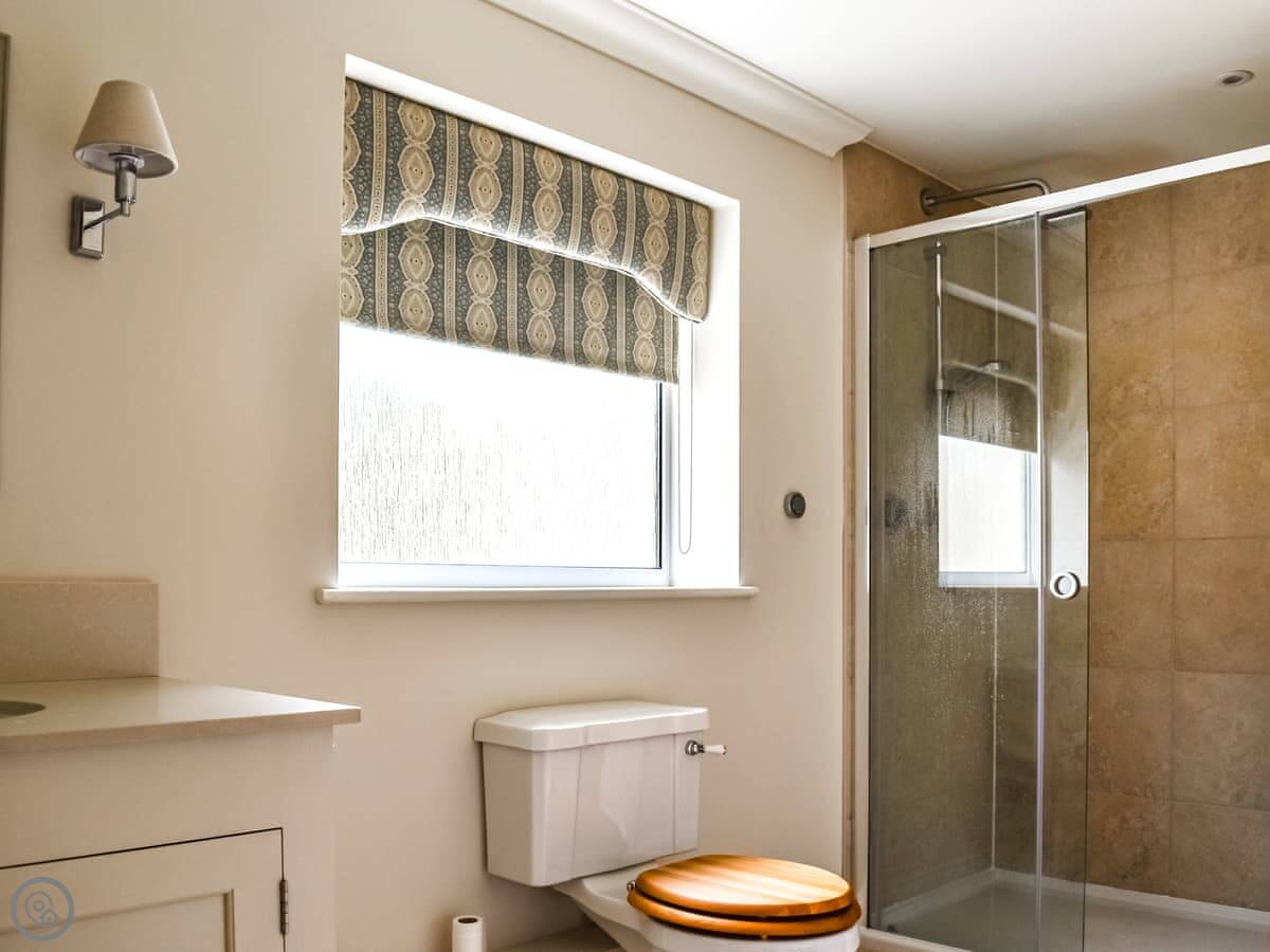 It sleeps four in two bedrooms. Both are a good size and have their own bathrooms. One has a shower, the other a bath. Everything's on one level.