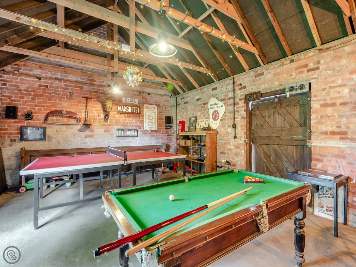 The main thing people like is the games room. It's in a separate barn. There's a full size snooker table, a table tennis table, and a bar area with another wood burner. It's a good space if you've got a group.