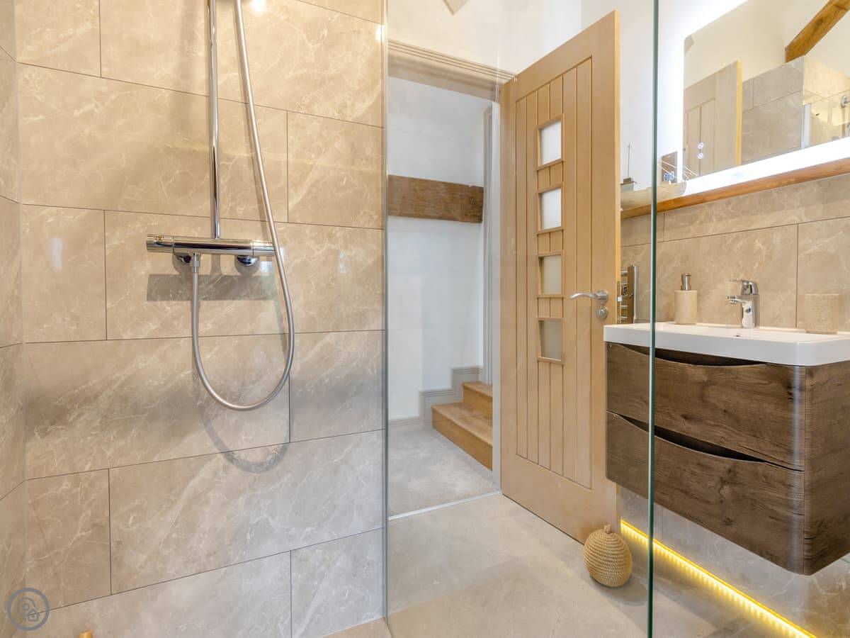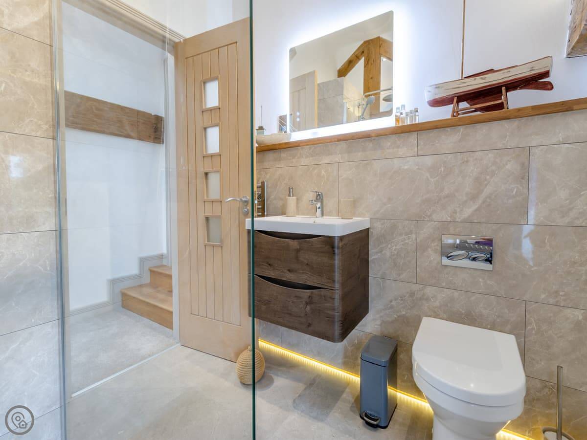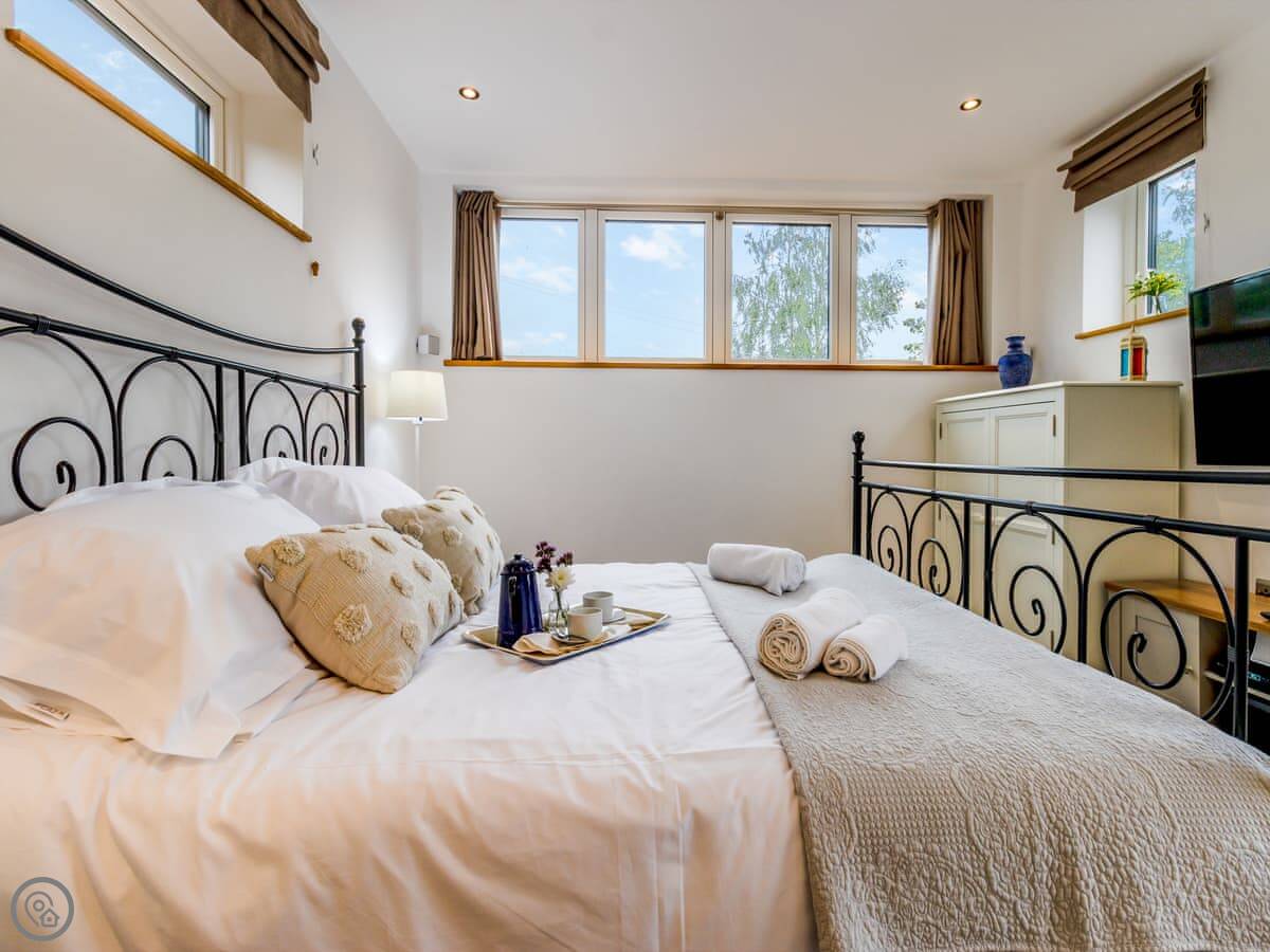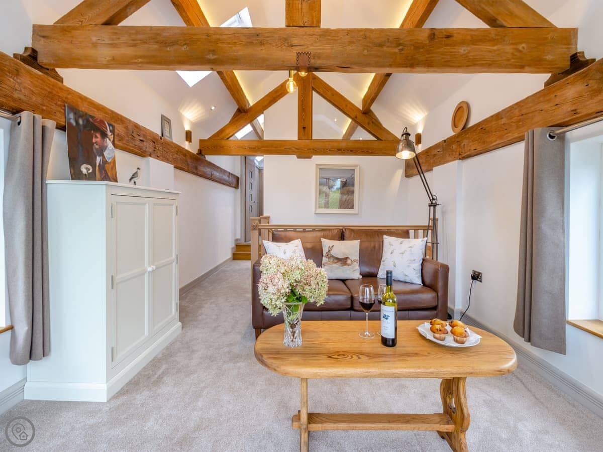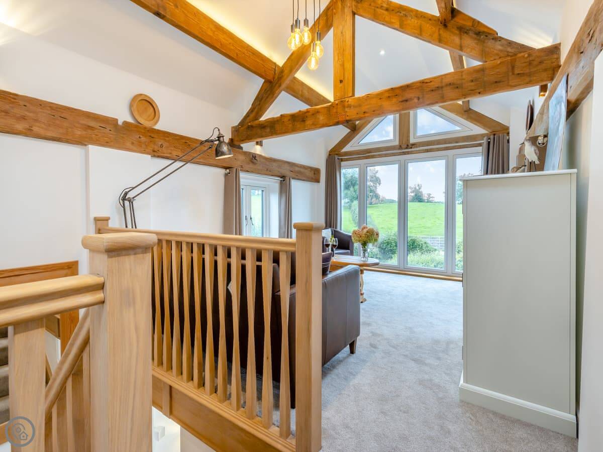 The main living area is upstairs. That's the view room, looking out over fields. The kitchen-diner and one bedroom are on the ground floor.