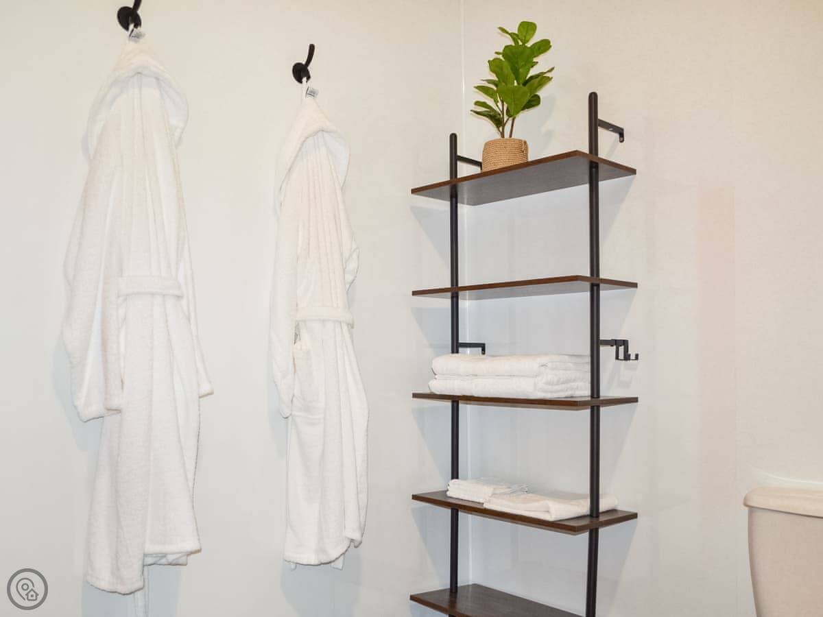 It's a 4 Star place. That means it's new, clean, and has everything you need. It's open plan, so the kitchen, living space, and bed are all in one room. There's a separate bathroom with a walk-in shower. Some studios are on the ground floor, some are upstairs. This one is wheelchair accessible, so it'll be a ground floor one.