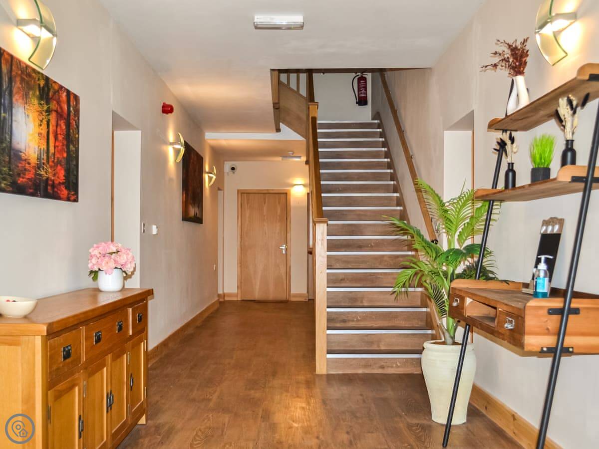 This is Orby Hall Studio 12, in Orby, Lincolnshire. It's one of twelve new studio apartments on the site, split over two floors. This one is on the first floor, so there's a staircase to get up to it.