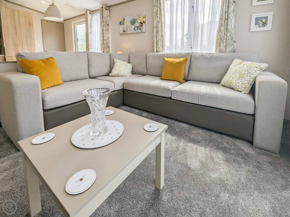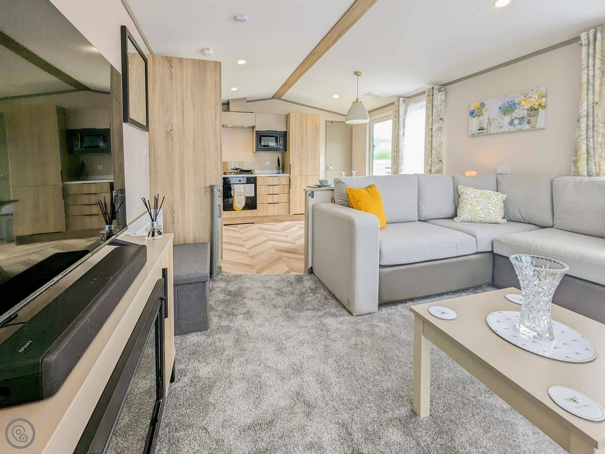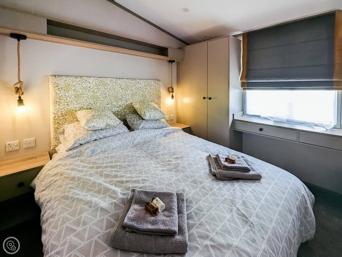 It sleeps six. There are two bedrooms and a bathroom. The extra two beds are a sofa bed in the living area. It's a 4 Star place, so it's comfortable and well-fitted. The decking area at the front is enclosed and secure, which is good if you've got dogs or kids.