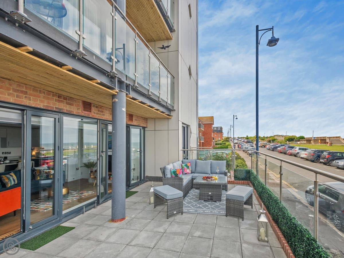 Zero Degrees North is a ground-floor apartment in Sheringham. It’s part of a modern development across from the sea, in a quiet spot just off the main road.
