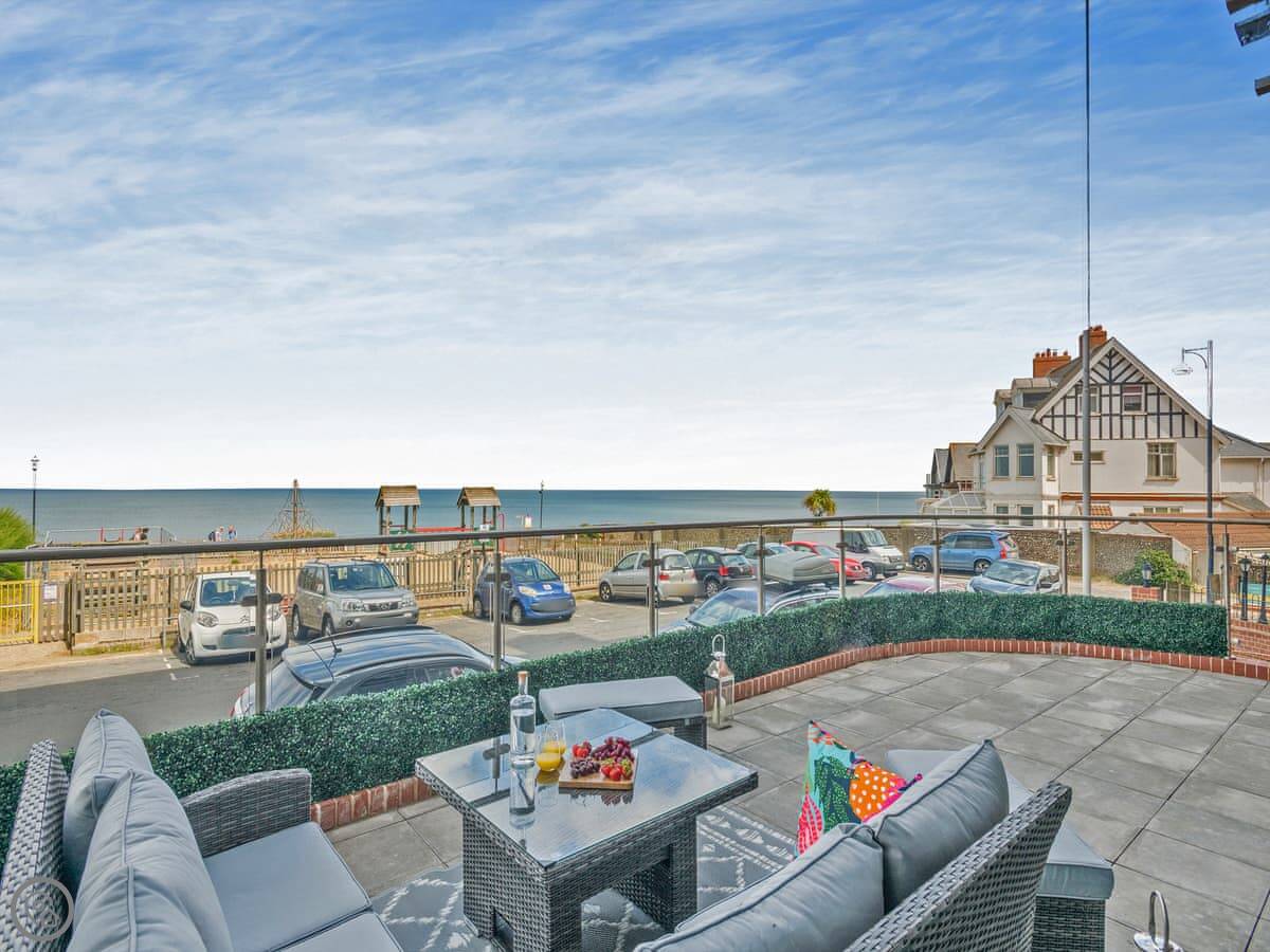 You can walk straight out onto a decent-sized terrace. You can sit there with a coffee. The beach is a two-minute walk away. It’s a Blue Flag beach, which means it’s clean.