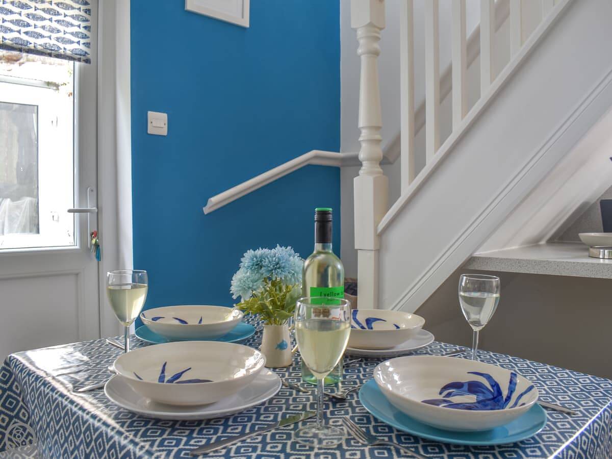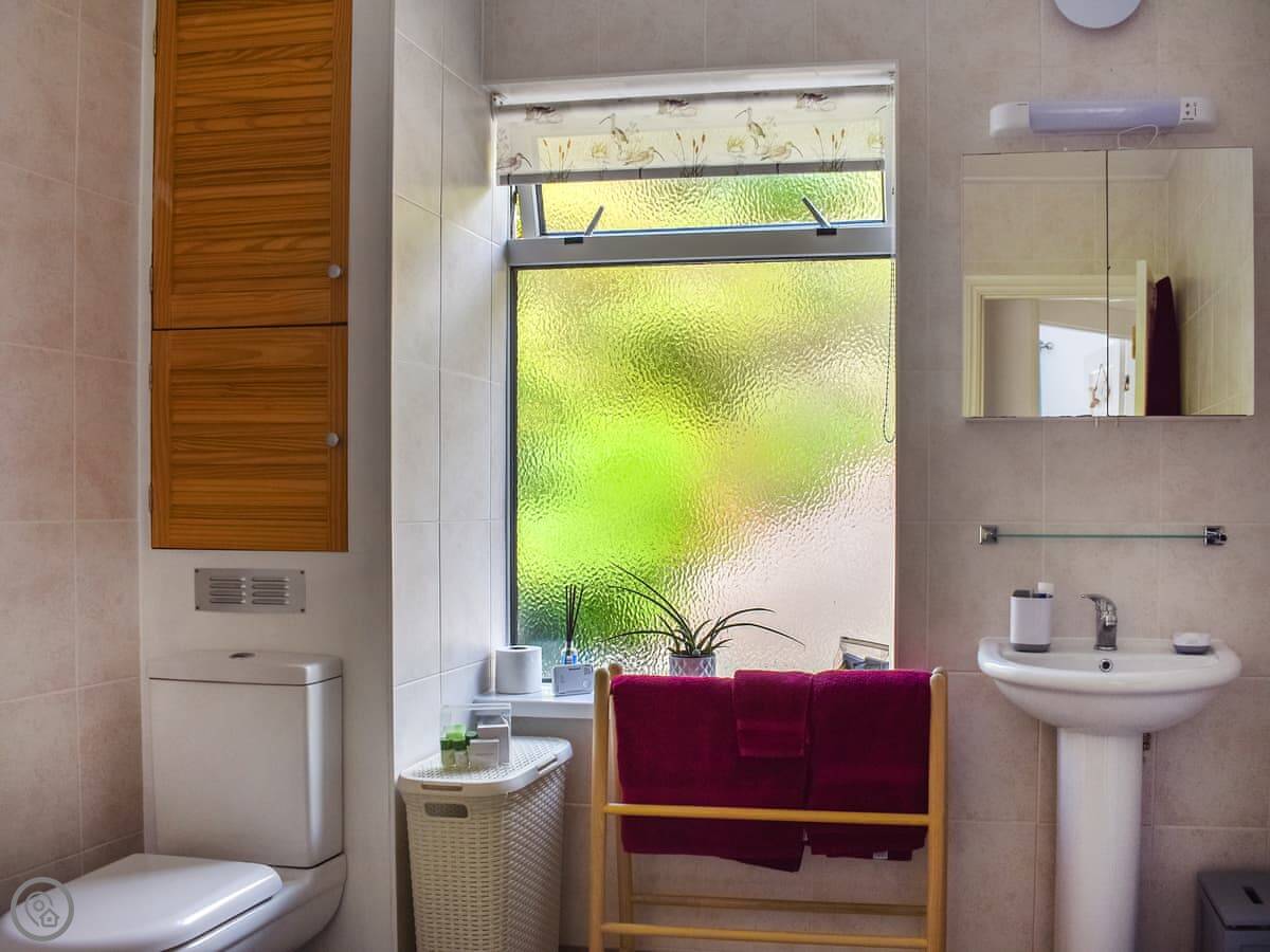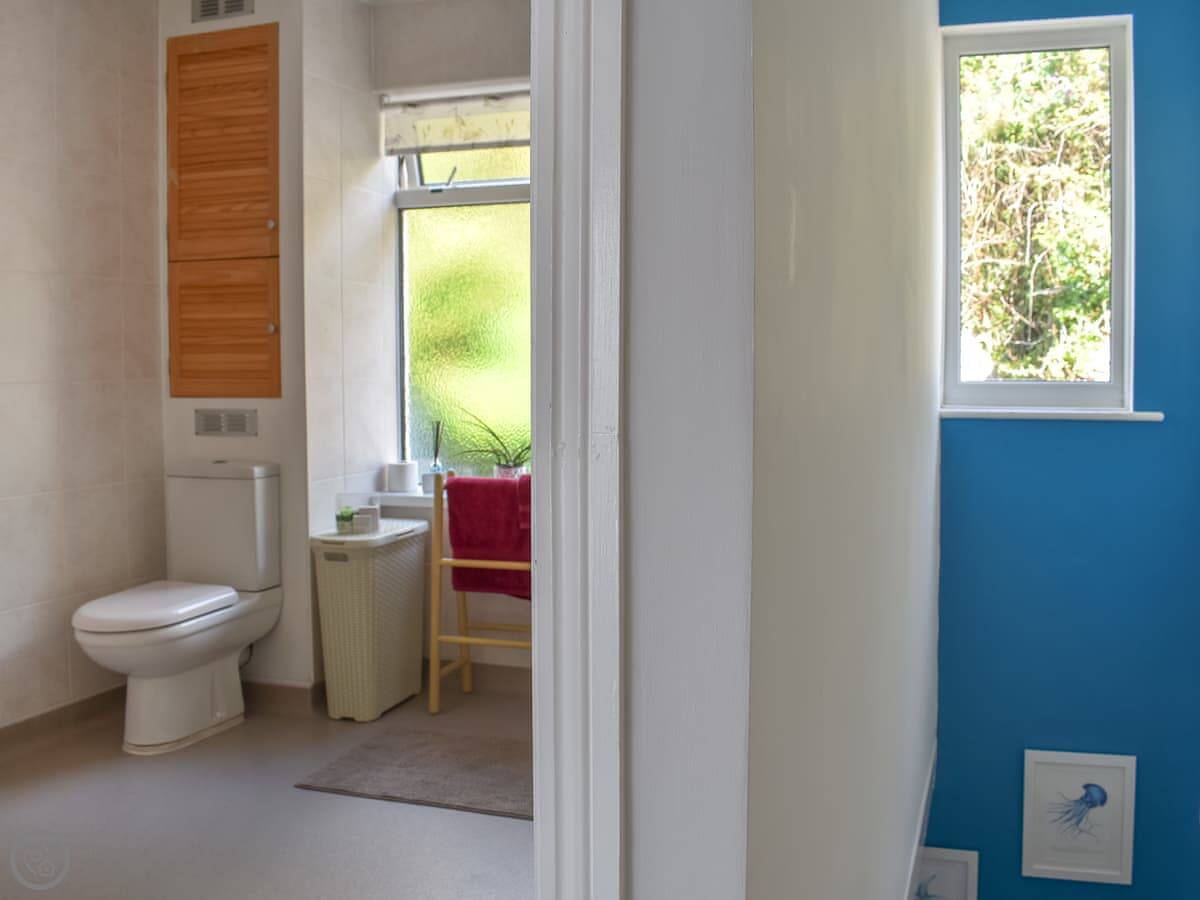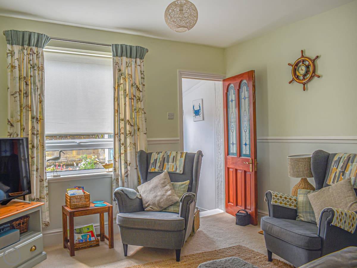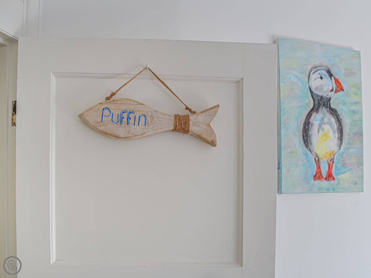 It sleeps four. Two bedrooms and one bathroom. It's got a 4 Star rating so it's well-equipped. The stairs are quite steep, typical for a cottage built into the hill. You enter through a little porch which is good for boots and coats.