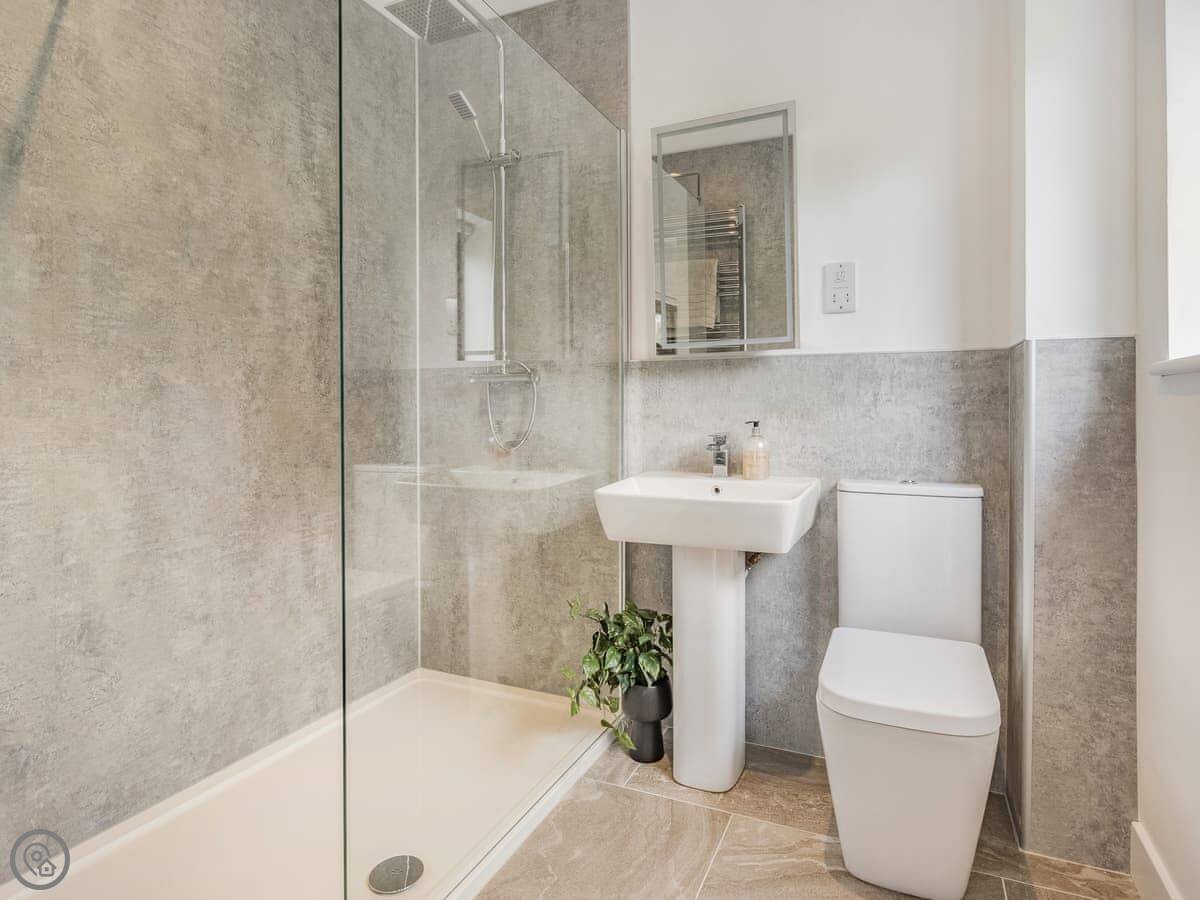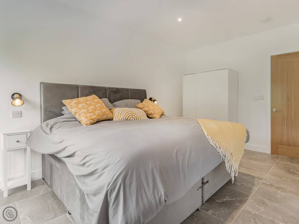 It sleeps six with three bedrooms. There are three bathrooms, which is handy. Two are en-suite. The beds are super king size. One of them can be split into two singles if you need it.