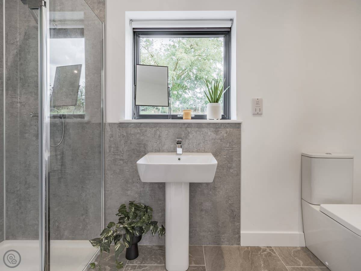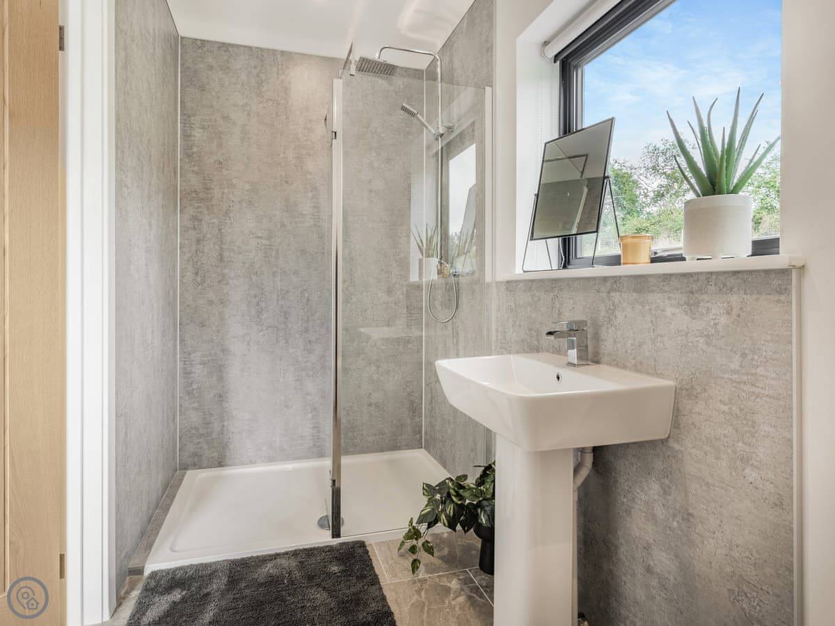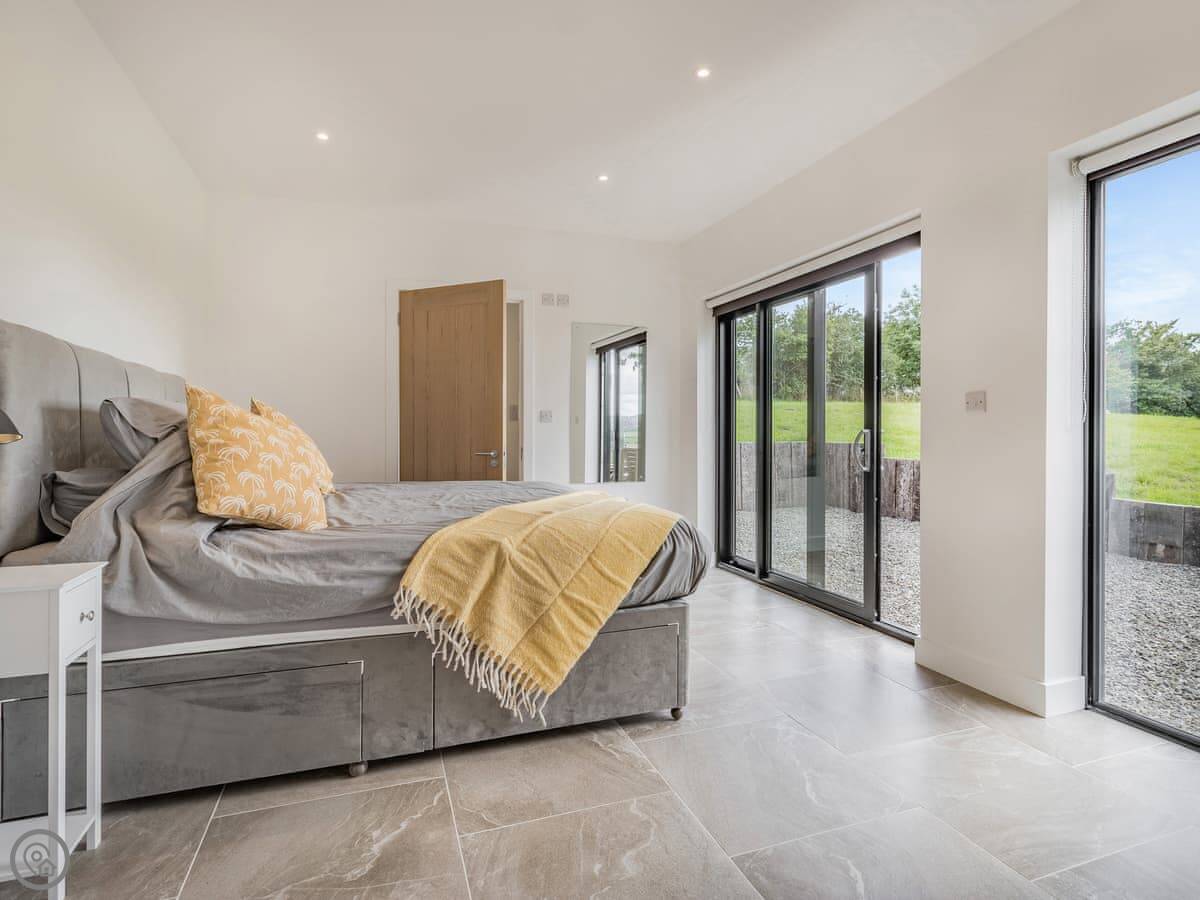 The whole place is on one level, which is good for accessibility. It's an eco build, so it's off-grid. Don't worry, you've got power and hot water. It's just done efficiently. There's underfloor heating throughout.