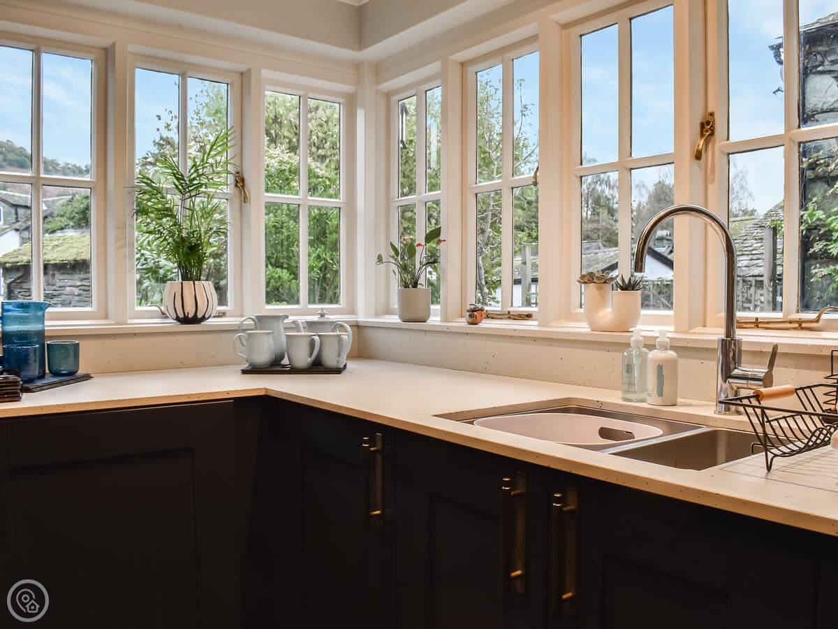 You're on the doorstep for everything in Ambleside. Stock Ghyll Force waterfall is a short walk up through the park. For longer walks, you can pick up the paths onto the fells from the village. The lake at Waterhead is about fifteen minutes on foot.