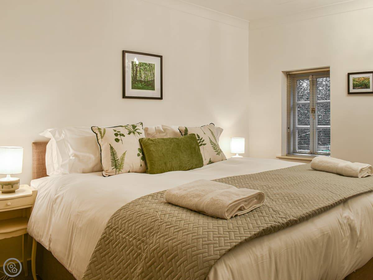 It sleeps four, in two bedrooms. One's a double with its own bathroom, the other has a big bed that can be two singles if you need it. There's a second bathroom as well, which is handy. It's got a 4 Star rating. It's well done. The stairs are fairly typical for around here.
