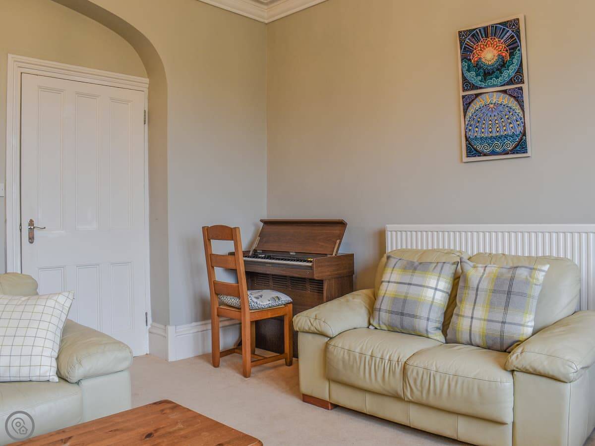 The living room has the wood burner, which is great for cooler evenings. There's a small piano in there too, if anyone plays. The kitchen is at the back and has everything you'd need, including a dishwasher and a washing machine.