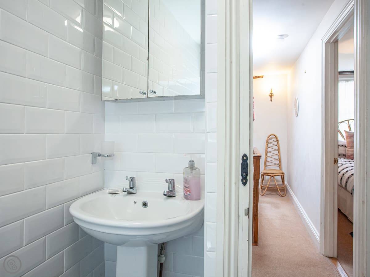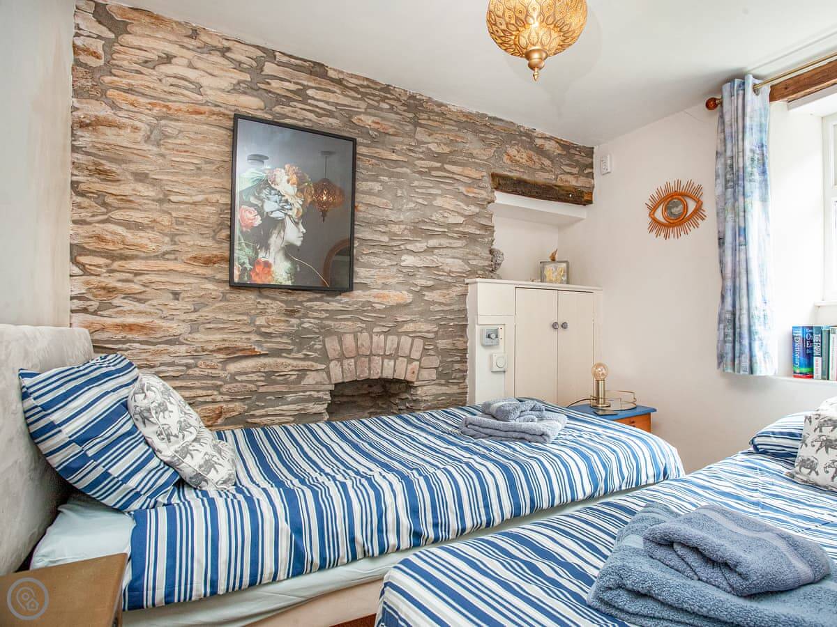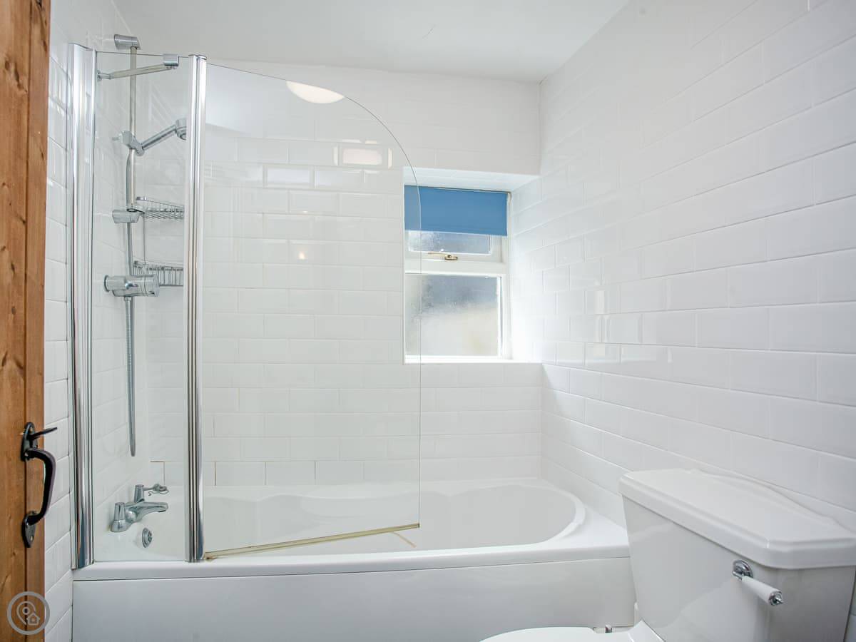 It's got two bedrooms and one bathroom. One bedroom is a double. The other bedroom has one single bed and another single that pulls out from underneath it, so it can be two singles or pushed together. There's one bathroom with a bath and shower over it. It's rated 4 Star.