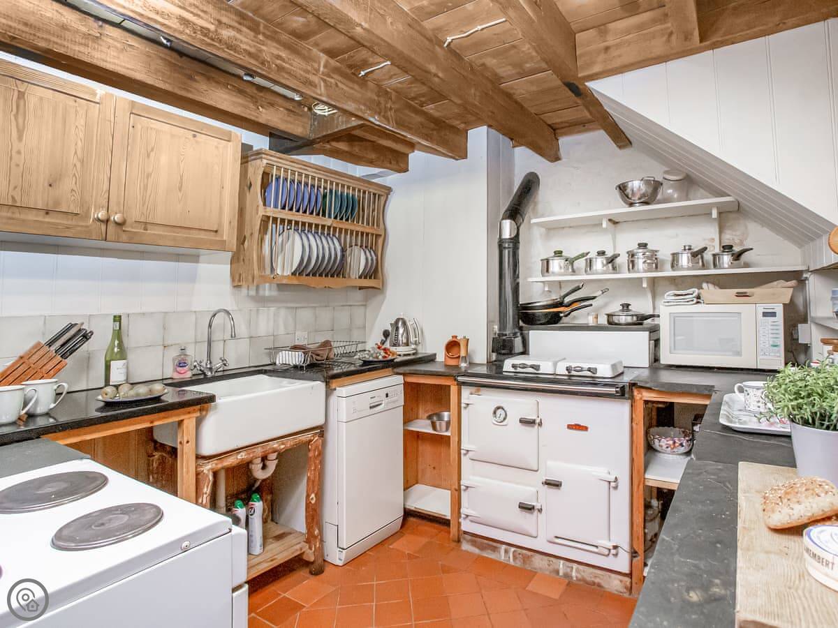 The barn sleeps six, with three bedrooms and three bathrooms. Two bedrooms have their own ensuite. It's got a 4 Star rating, which is about right. It's comfortable and clean. It's an 18th-century building though, so some doors and beams are low. Watch your head.