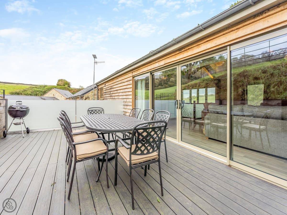 It sleeps eight people. Four bedrooms, three bathrooms, so that helps with the morning queue. It's got a 5 Star rating, which means it's well equipped and comfortable.