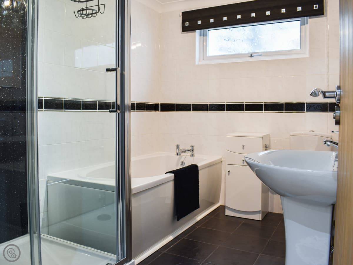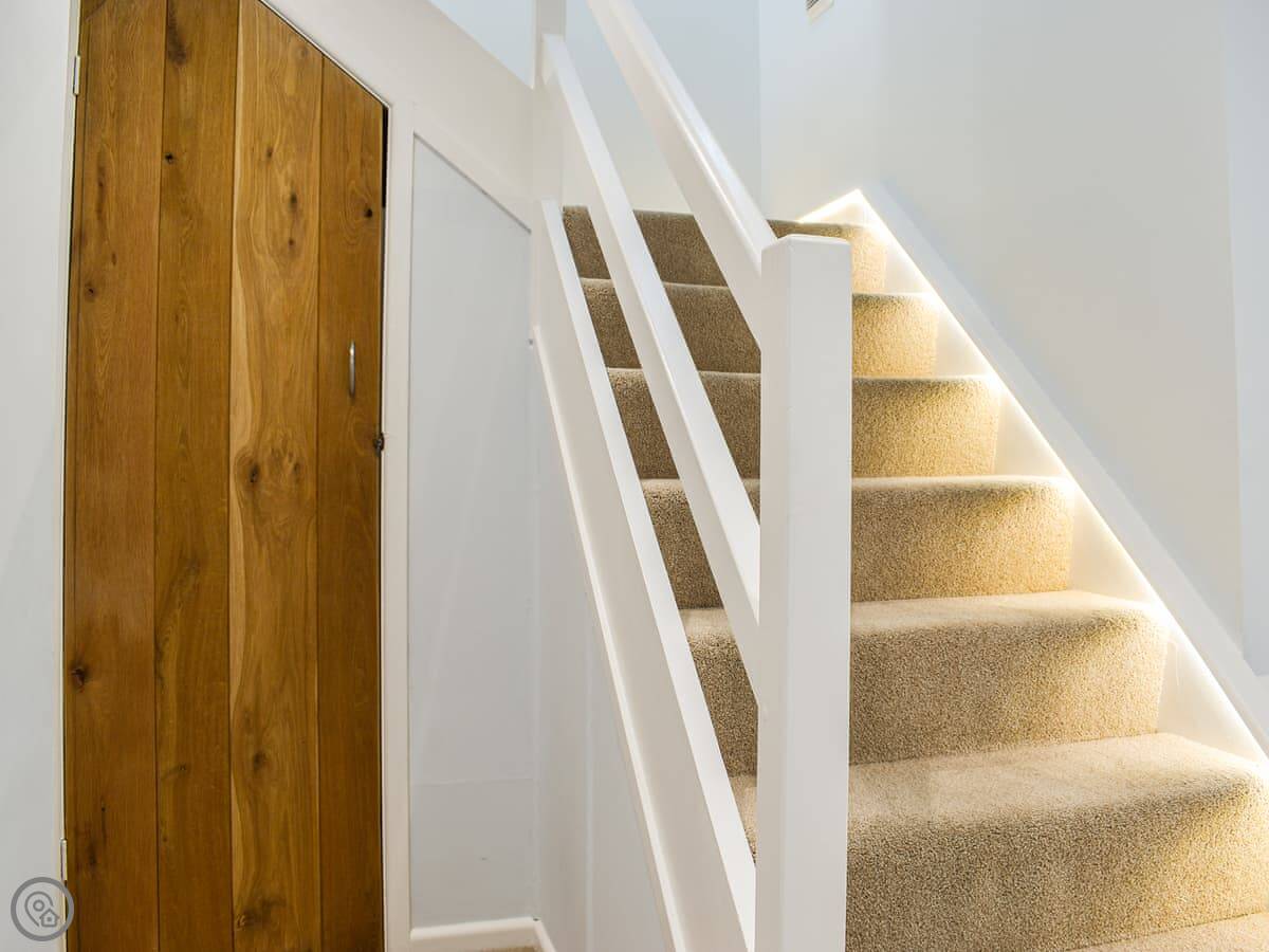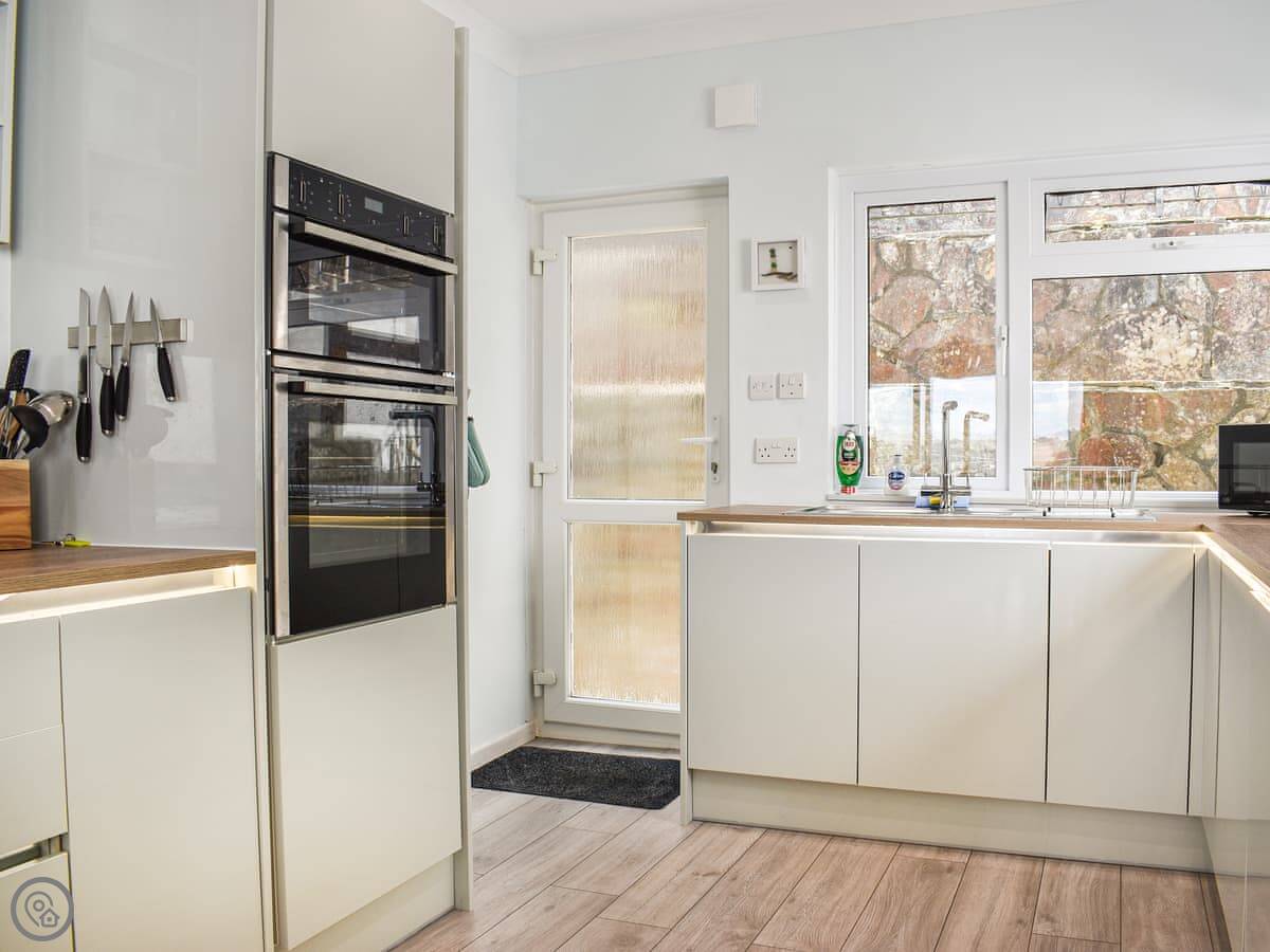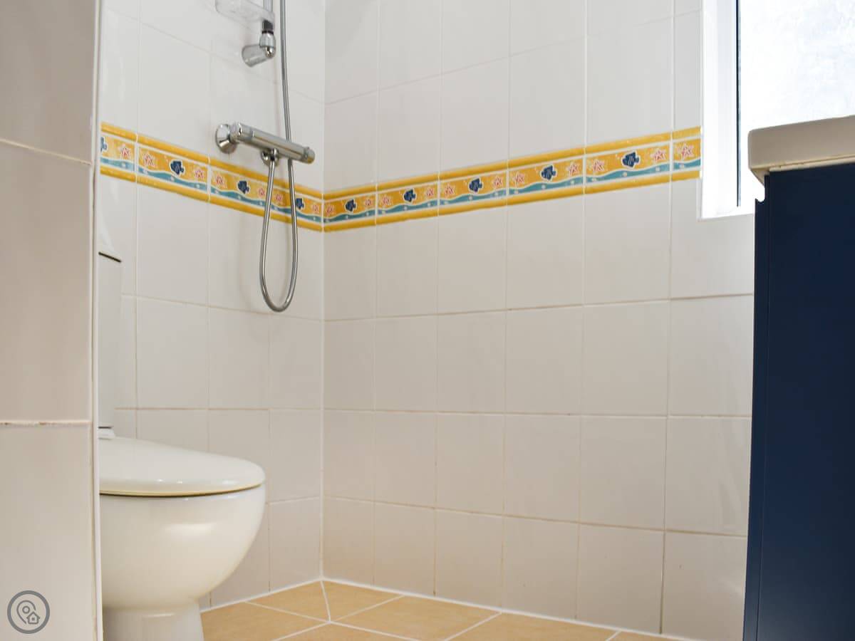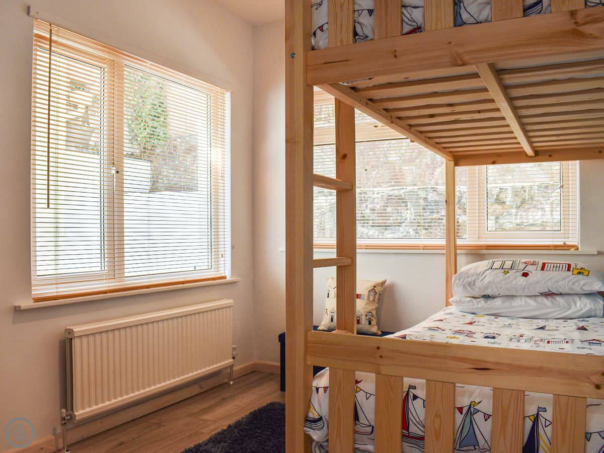 There are two bedrooms with kingsize beds that can be split into twins if you need. The third room has bunk beds. There are two bathrooms, one is a wet room on the ground floor.
