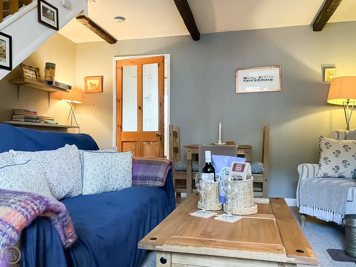 It sleeps three people. There's one double room and one single room, and one bathroom upstairs. The stairs are fairly typical for a cottage, so mind your head on the way up.