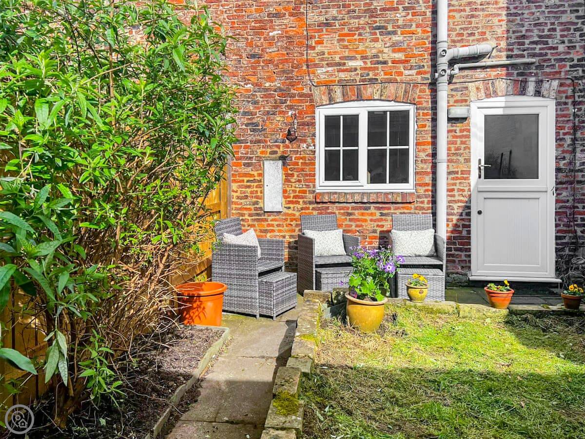 The living room has an open fire. You get one basket of logs included. The kitchen has a dishwasher and a washing machine. Outside there's a small walled patio at the back with a table and chairs. It's south facing so it gets the sun.