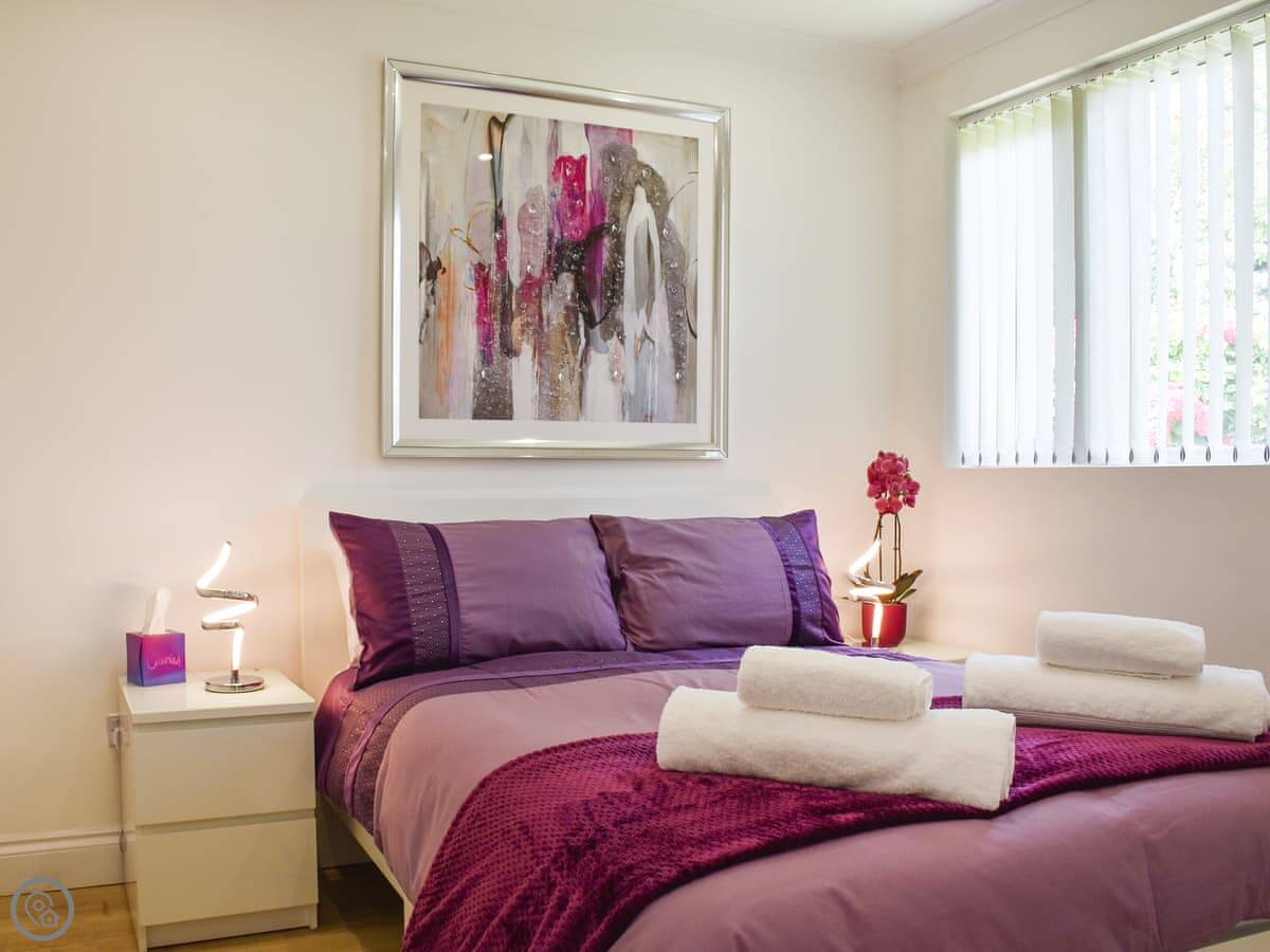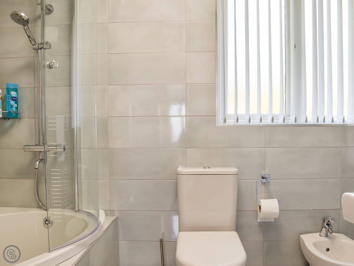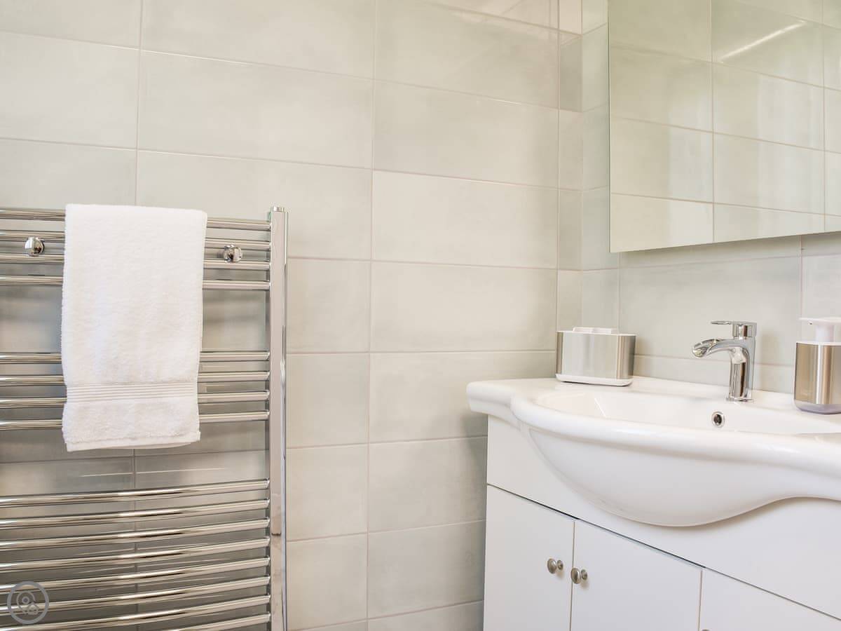 It's got a 4 Star rating. It's modern inside and feels quite smart. The garden at the back is lawned, with a patio area. You can get out to it from the kitchen.
