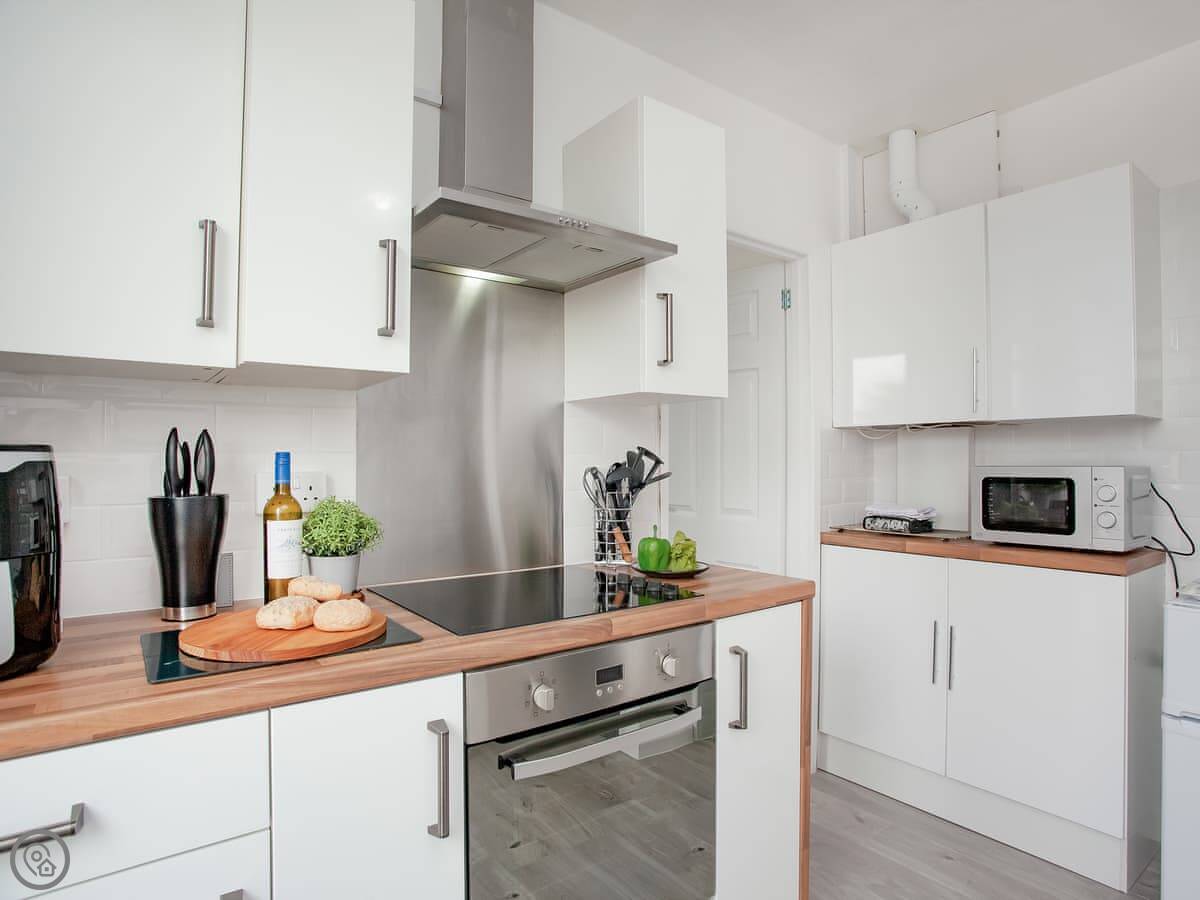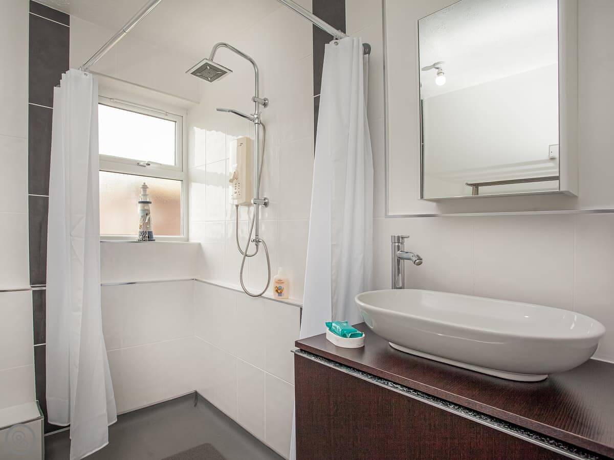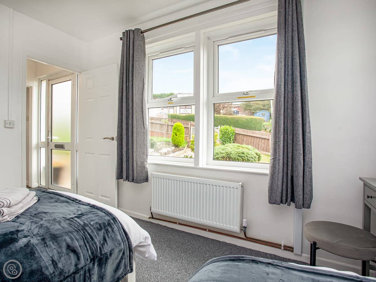 It sleeps four in two bedrooms. One has a double bed, the other has two singles. There's one bathroom with a walk-in shower. It's a 3 Star place, so it's comfortable and clean but not luxurious. Everything works.