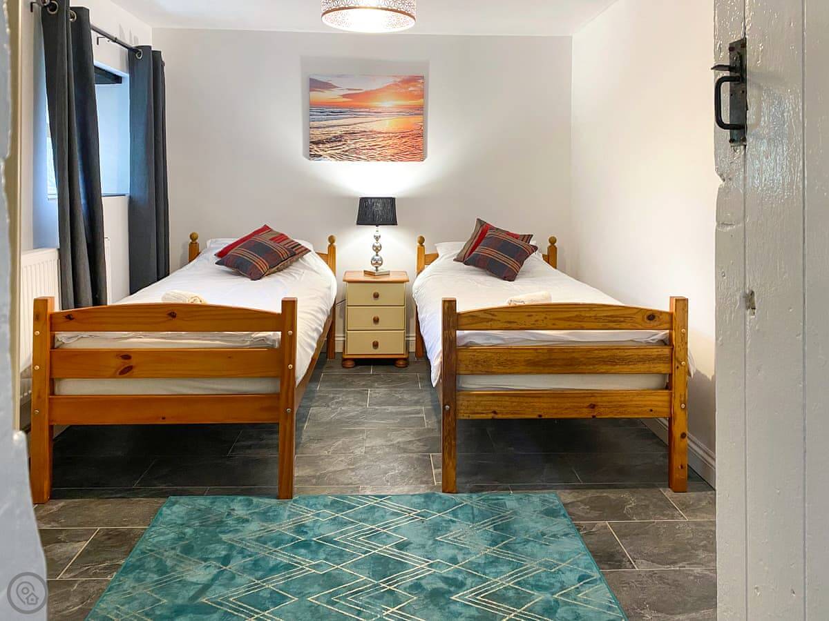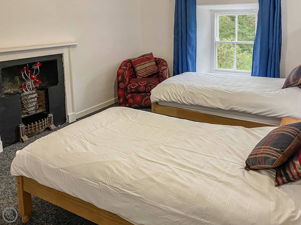 The Farmhouse is in Pelcomb Cross. It's a proper detached farmhouse, not semi. Sleeps twelve in six bedrooms. There are two bathrooms.