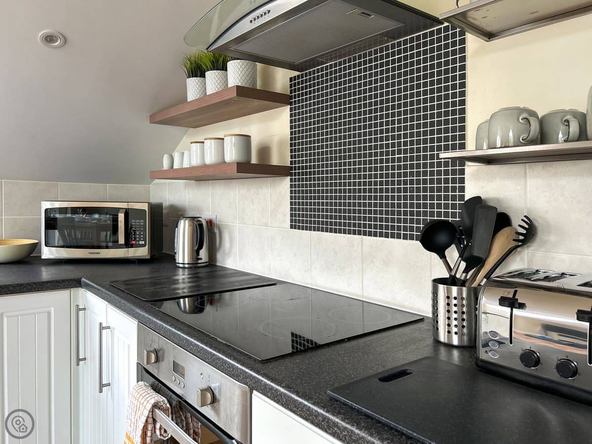 For facilities: it's all there. WiFi, TV, washing machine, dishwasher. Bedding and towels are included. There's a cot and a highchair if you need them. On-site parking. One well-behaved dog is allowed.