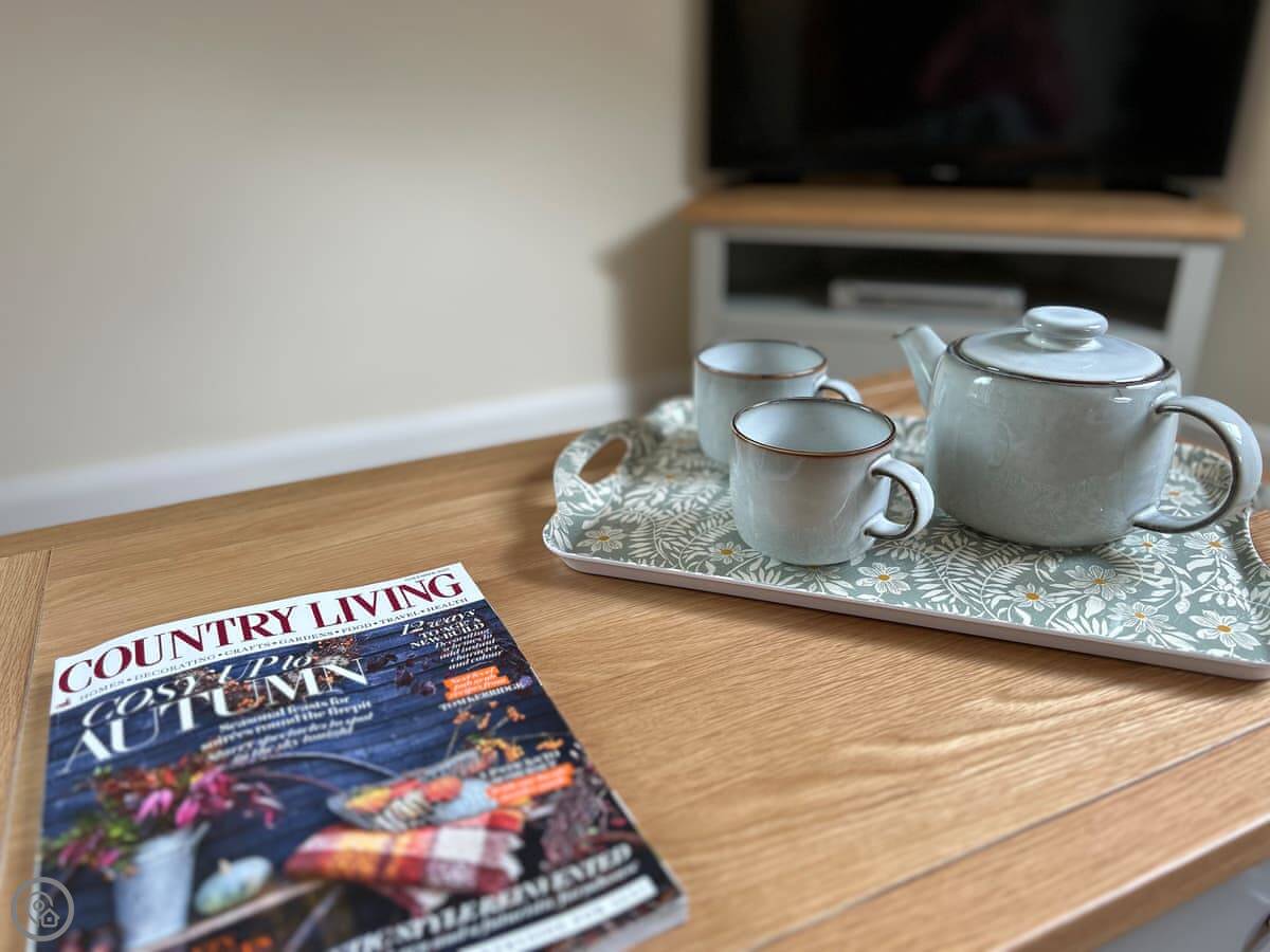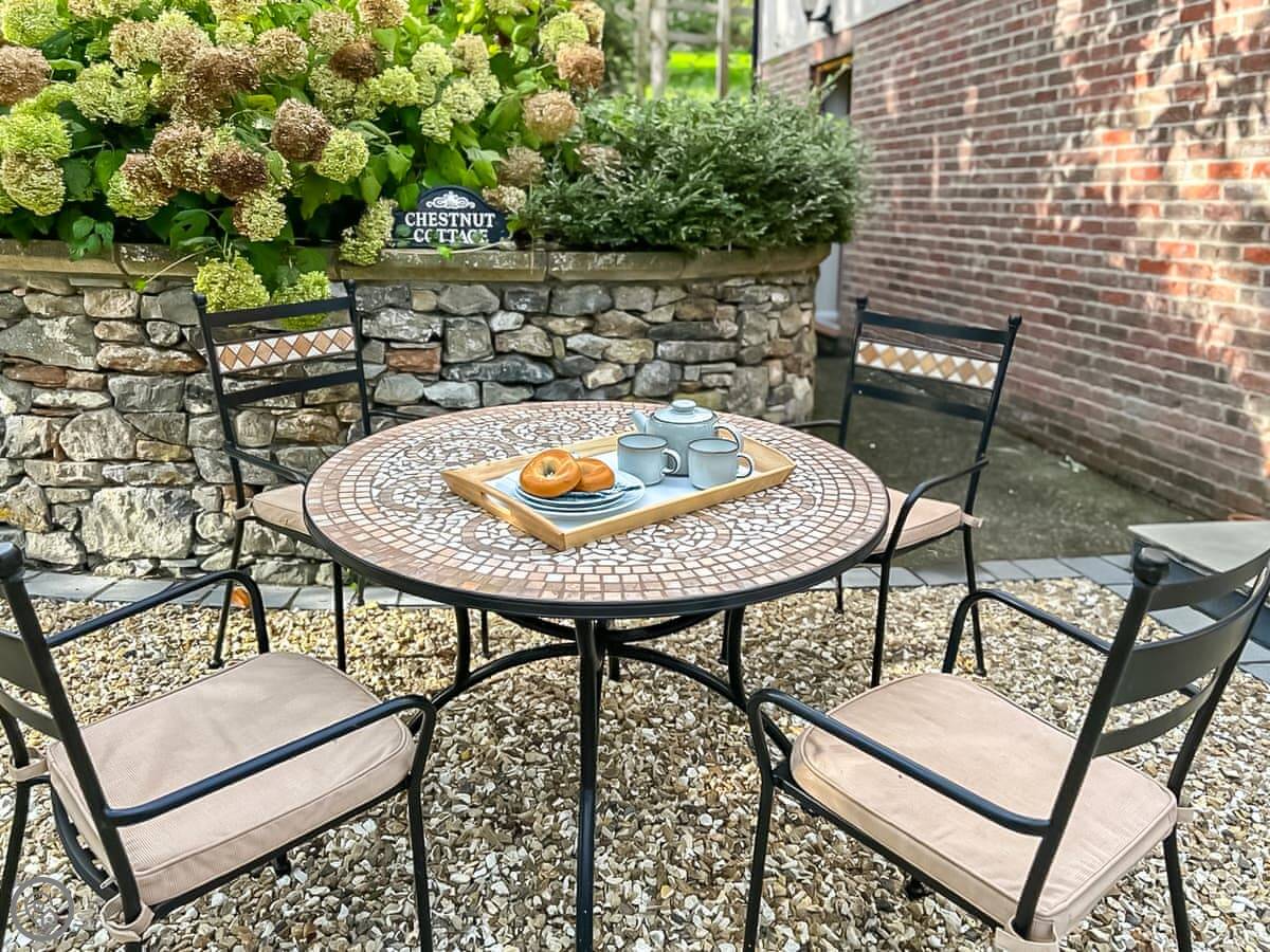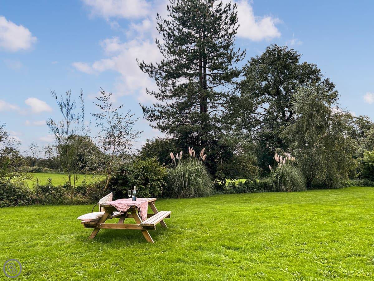 The garden is yours to use. There's a patio with a table and chairs. You also get sole use of the big field next door. There's a picnic bench out there, good for a barbecue. The village playing field and a kids' swing park are a short walk away, down the footpath.