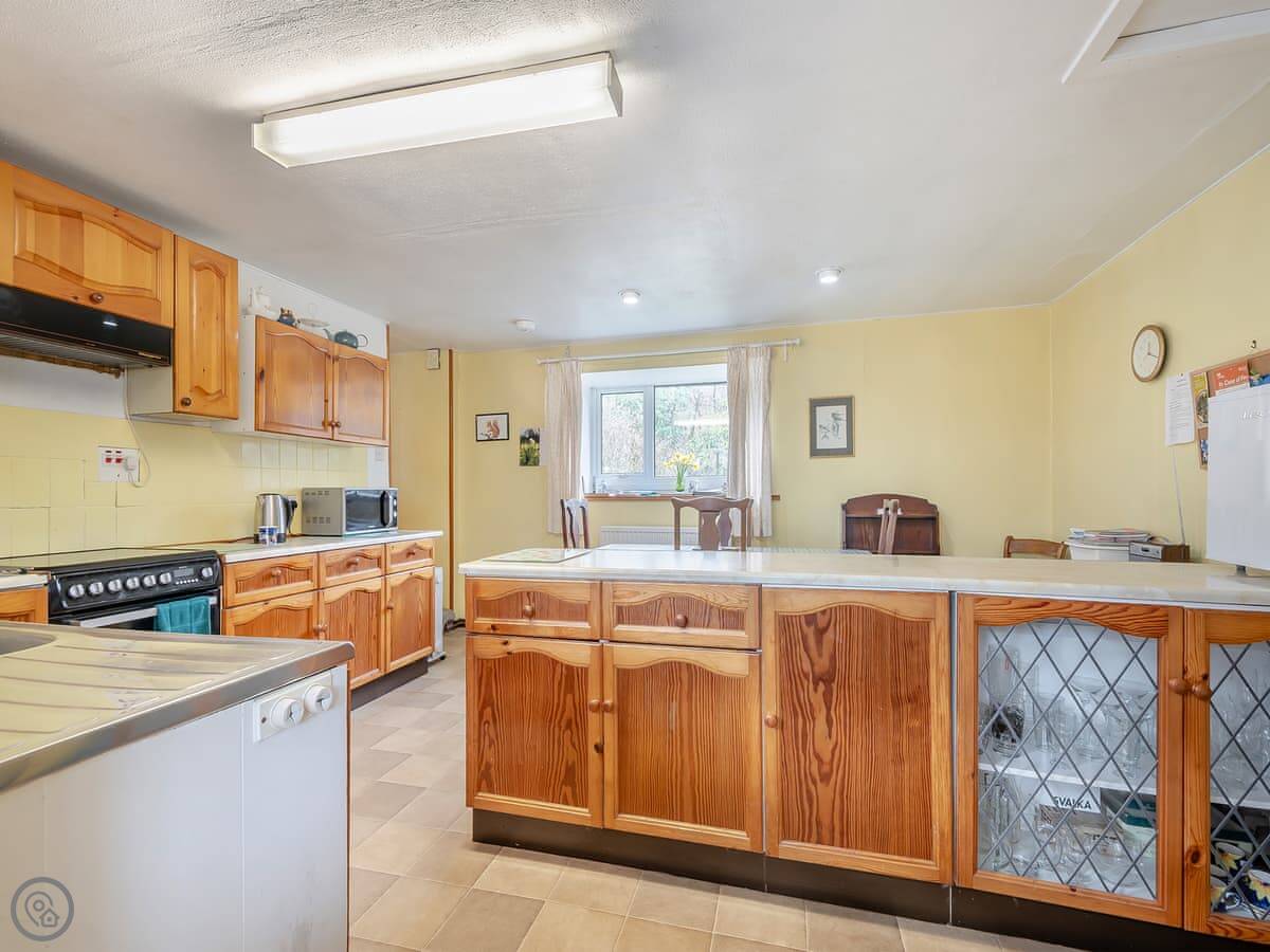 The living room has a wood burner. The kitchen is a good size. There's a washing machine and WiFi. Bedding and towels are included.