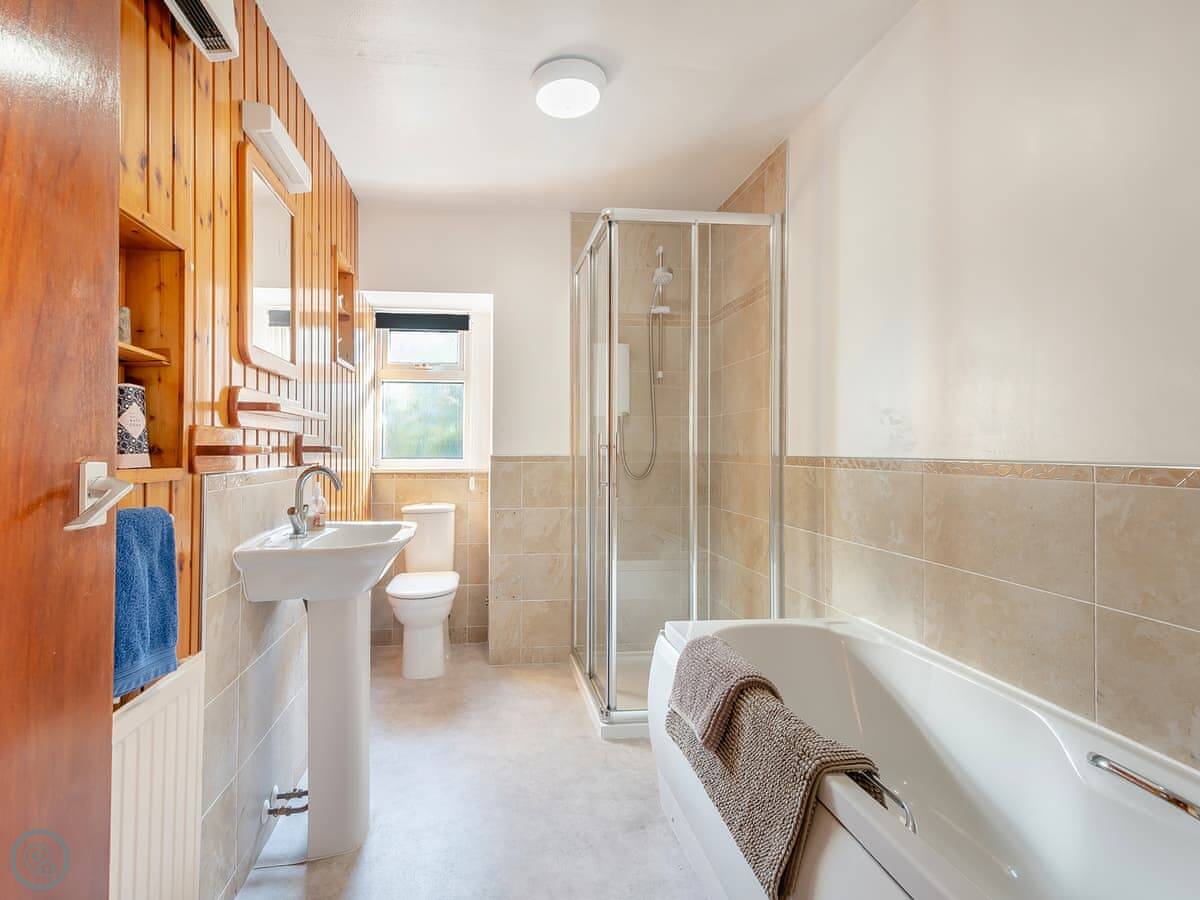 It sleeps four. Two bedrooms on the ground floor and one bathroom. It's a 3 Star place, so it's comfortable and clean but not luxurious.